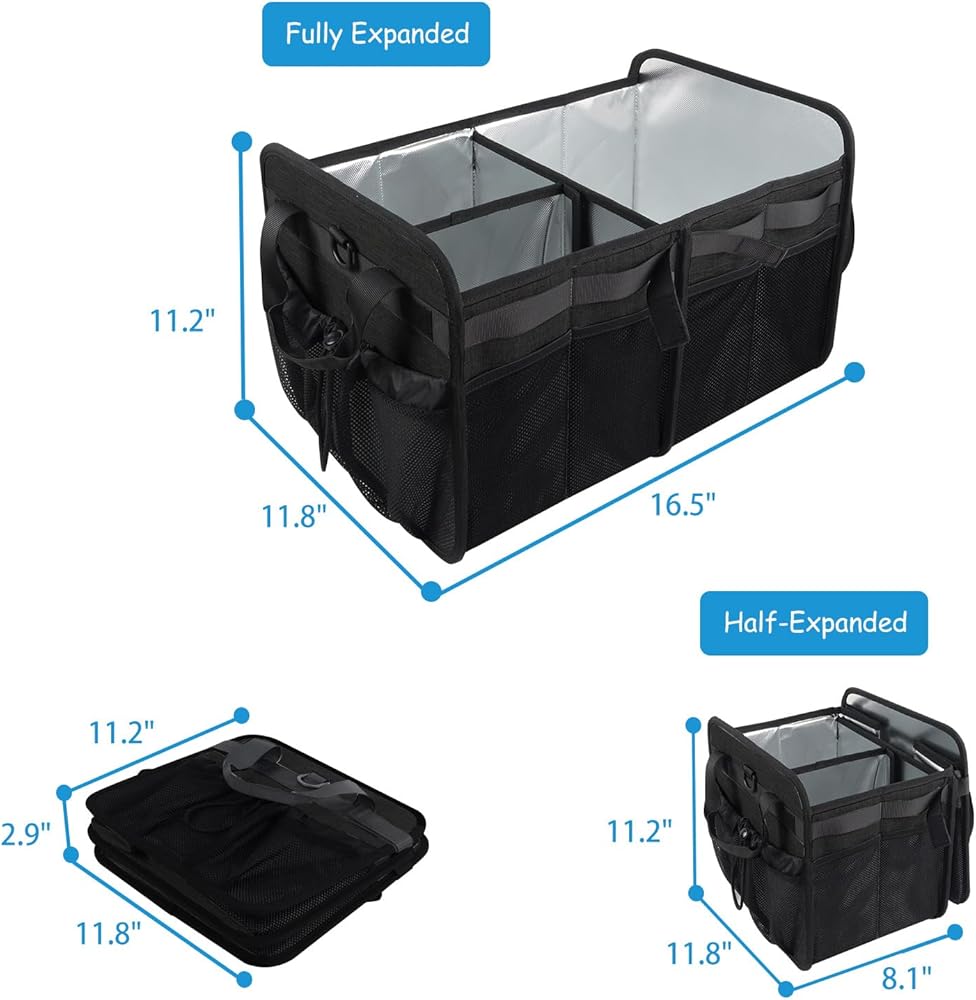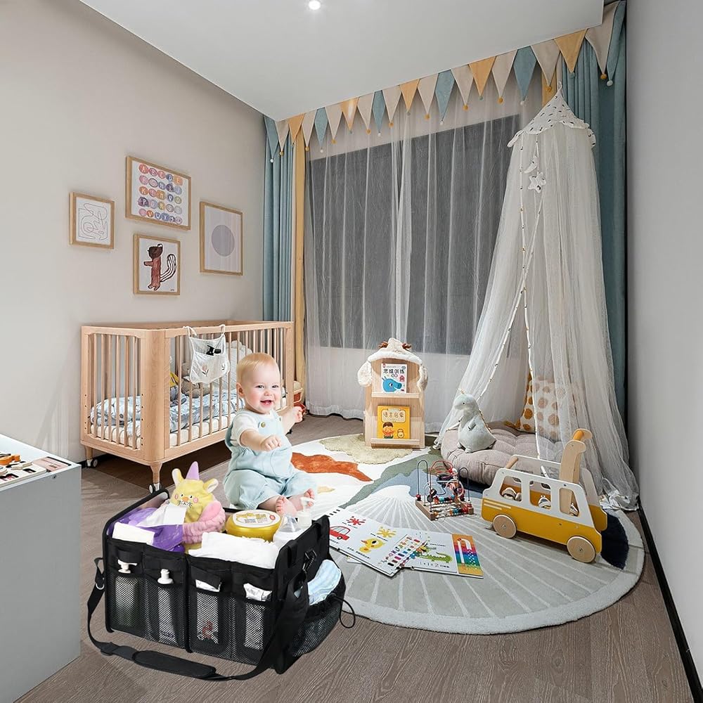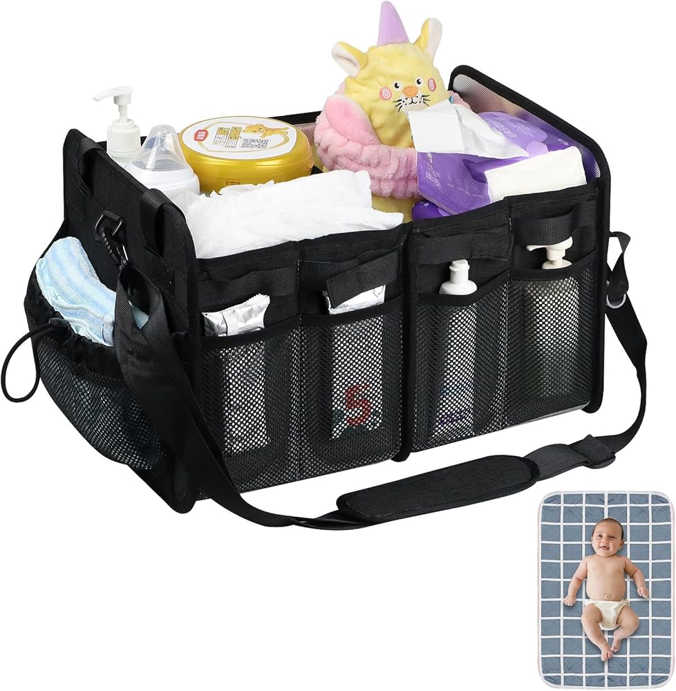 حجم قابل للطي والتعديل: - تتميز حقيبة الحفاضات هذه بحجرتين يمكن طيهما بشكل منفصل، مما يسمح لك بتعديل منطقة الاستخدام وفقًا للمساحة المتاحة. عند توسيعها بالكامل، تكون أبعادها 16.5 بوصة × 11.8 بوصة × 11.2 بوصة. يمكن طي الأجزاء غير المستخدمة بسهولة، مما يزيد من كفاءة التخزين ويوفر المساحة.