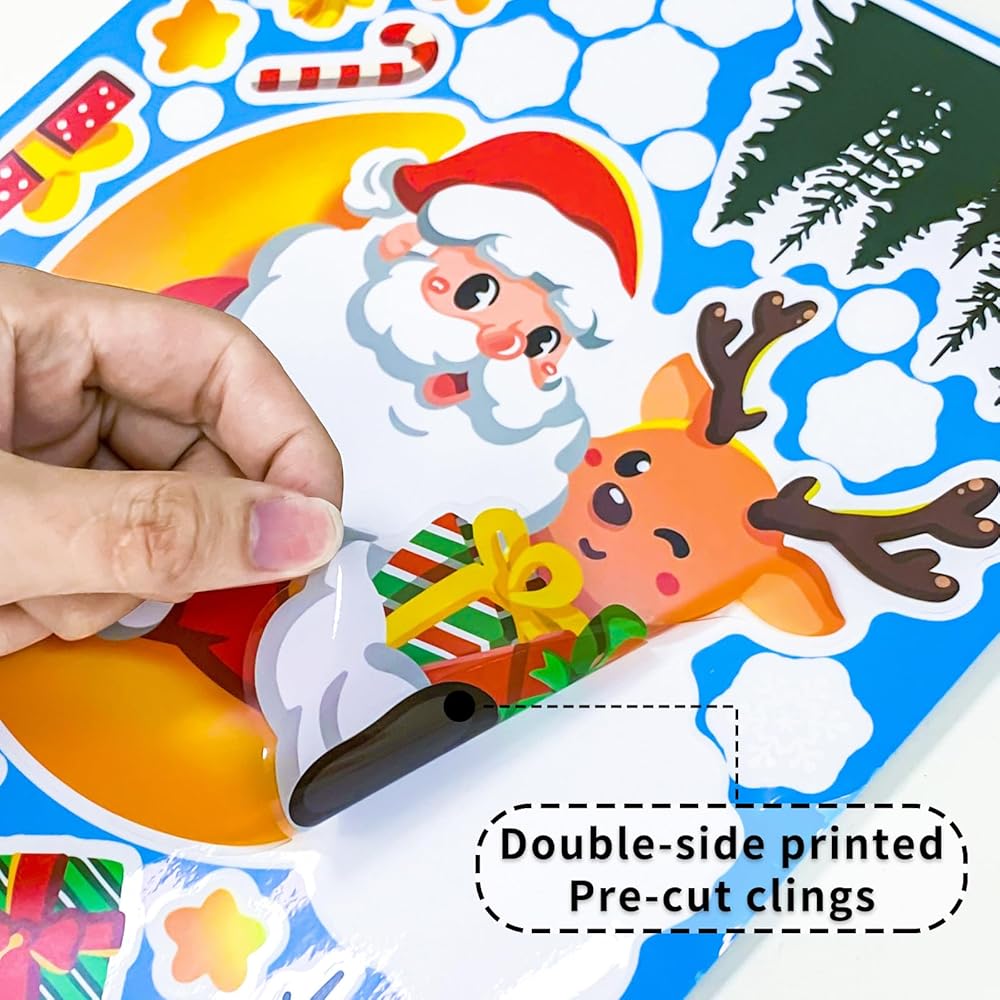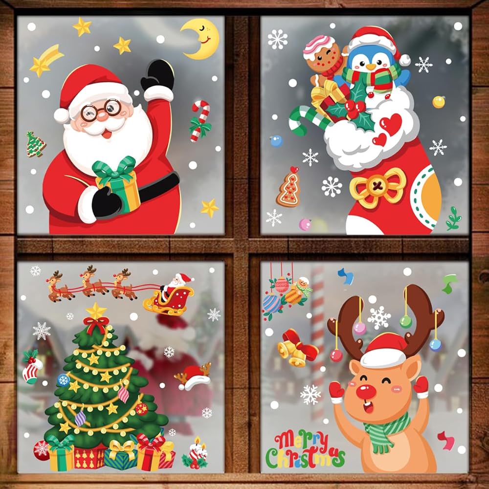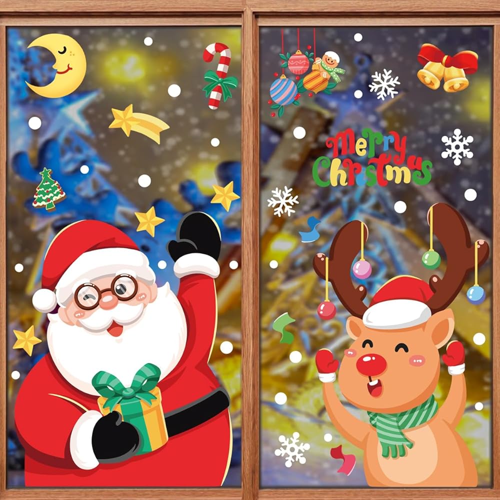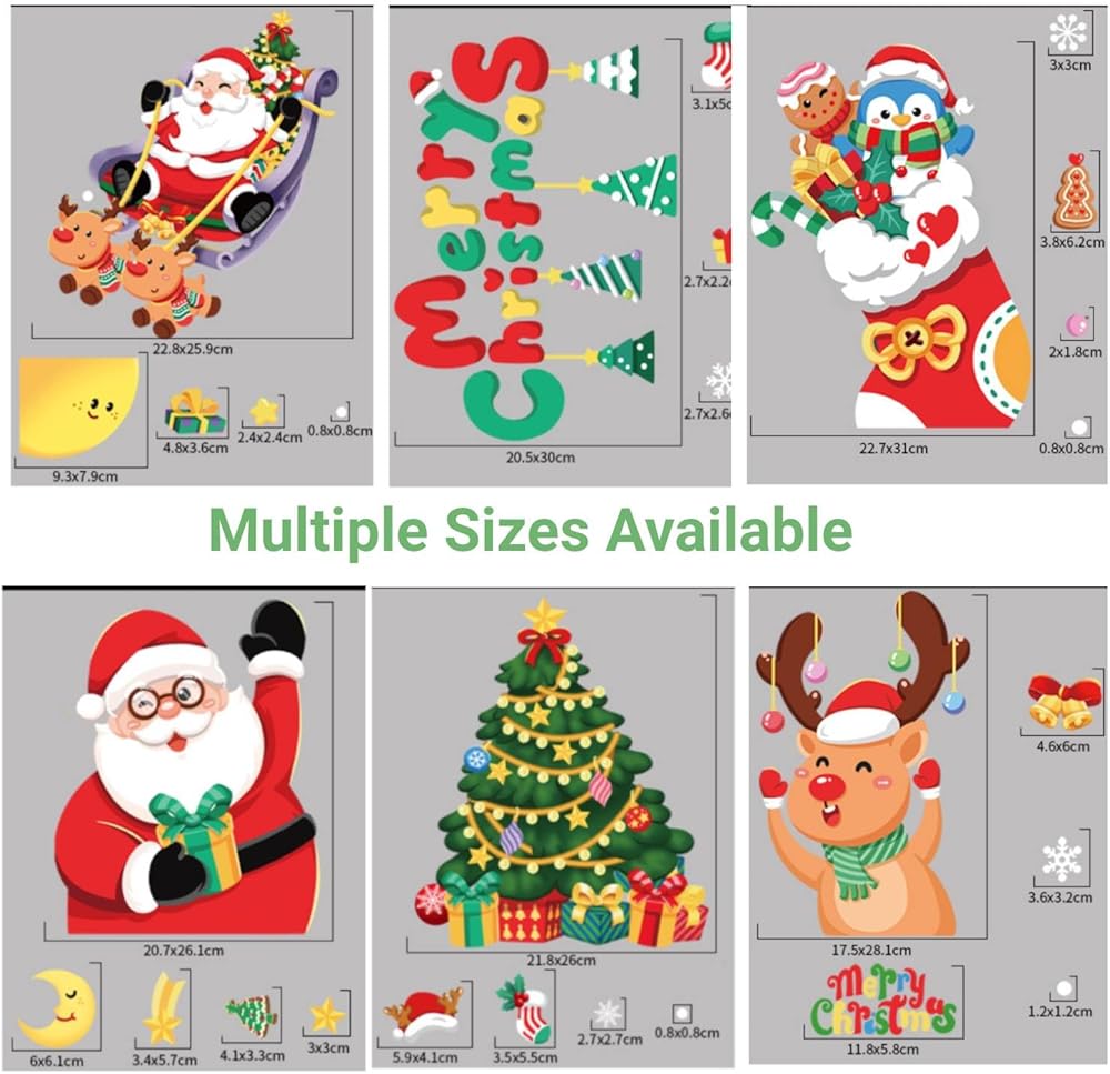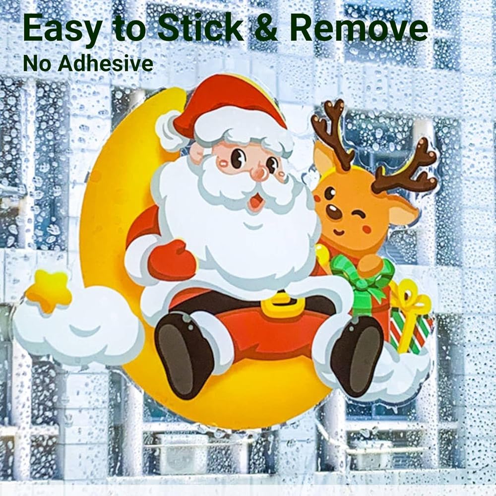 [Wide Applicability] Holiday window clings are suitable for home window mirror decorations, sliding glass or door, bay window and good for bathroom, kitchen, office, classroom, super market, garage doors windows too. Christmas decor can brighten your life.