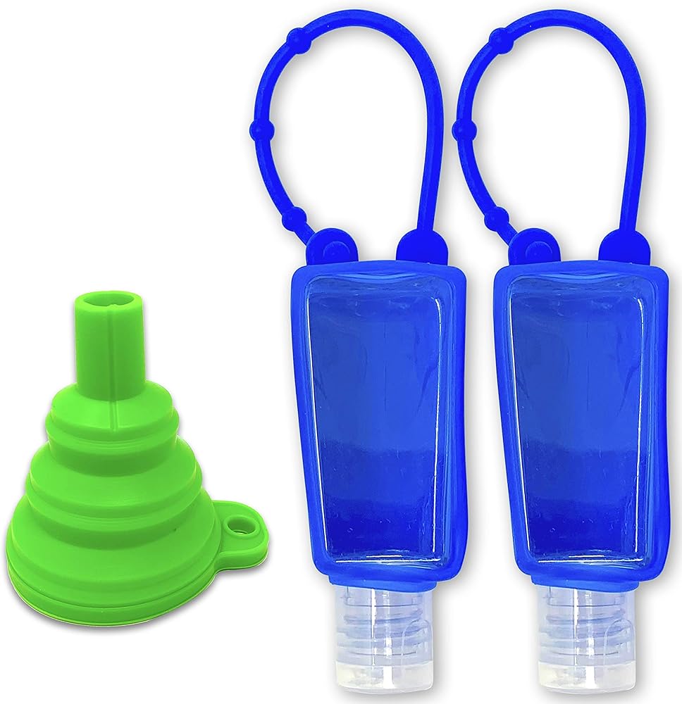 تتضمن مجموعة مستلزمات الرحلات البحرية مجموعة من زجاجتين [2] فارغتين وقابلة لإعادة الملء مع حوامل سيليكون زرقاء جميلة. إليك قائمة كاملة بما هو مضمن.