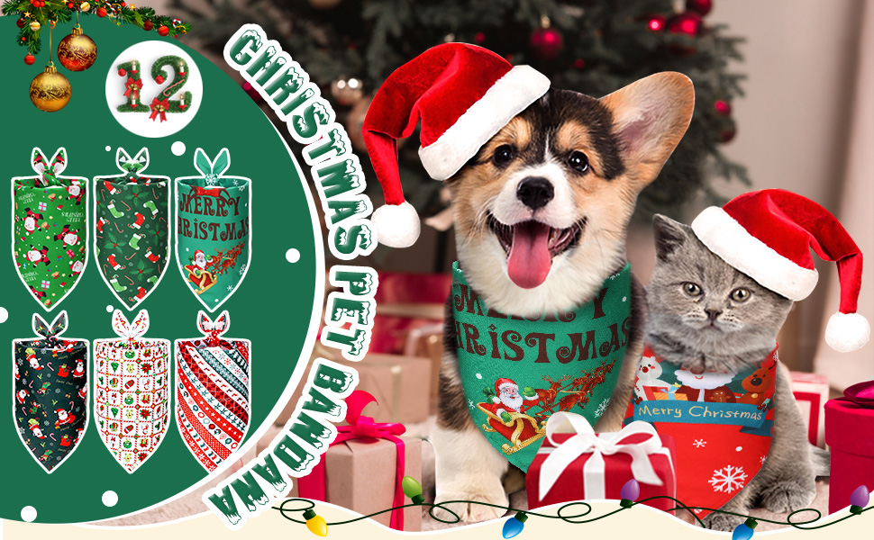 12 قطعة عيد الميلاد الكلب باندانا مثلث باندانا مثلث وشاح المرايل منديل مع أنماط عيد الميلاد لعيد الميلاد الحيوانات الأليفة زي اكسسوارات الديكور (سانتا، الحلوى، الأيائل)