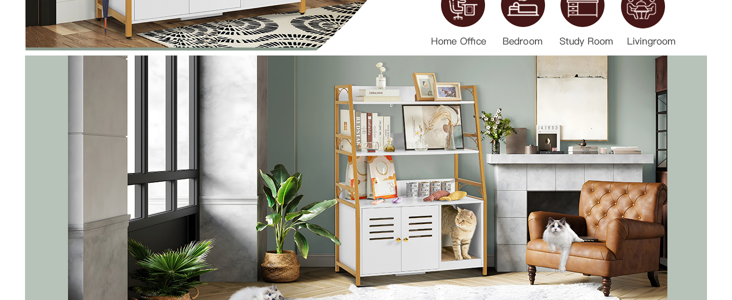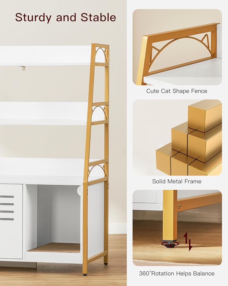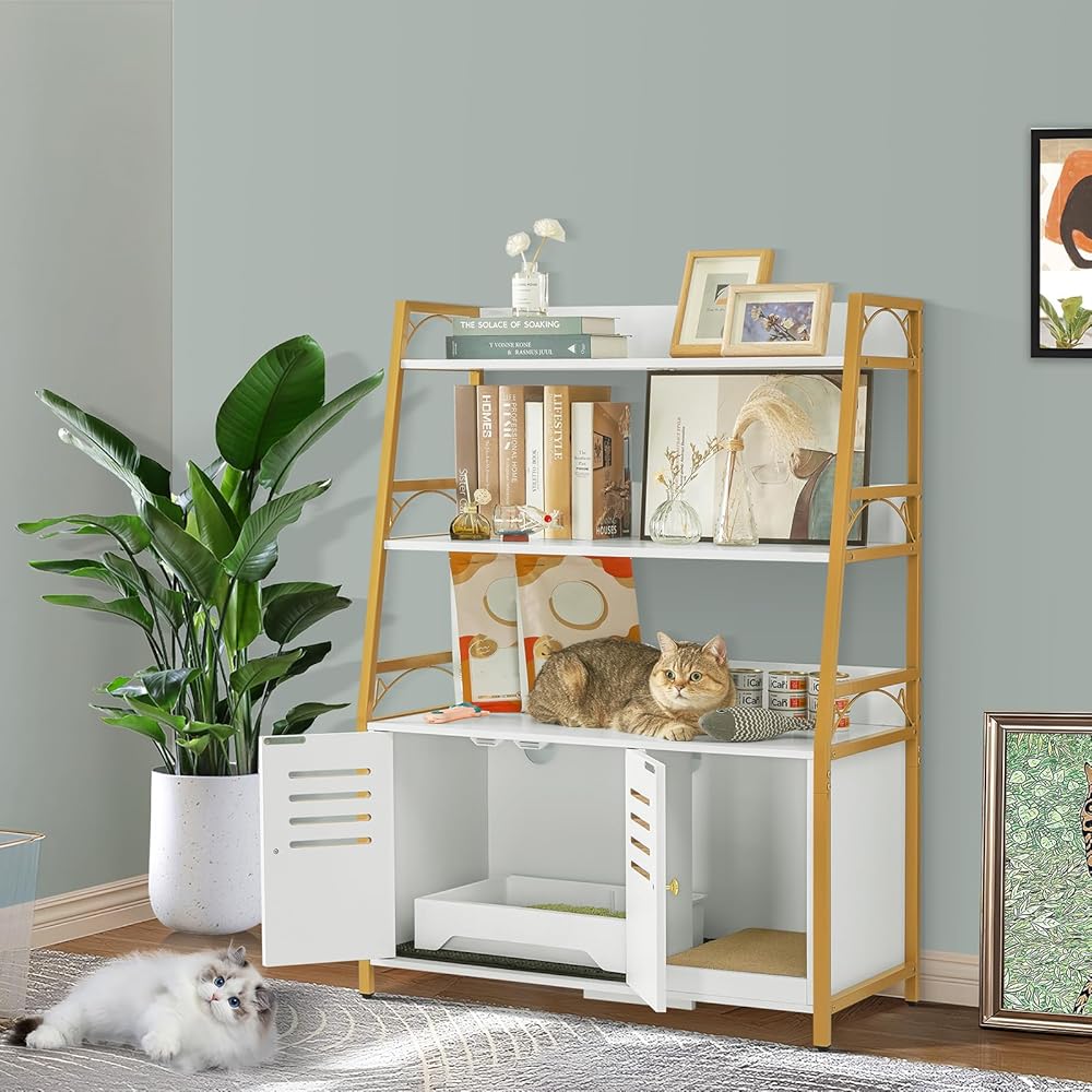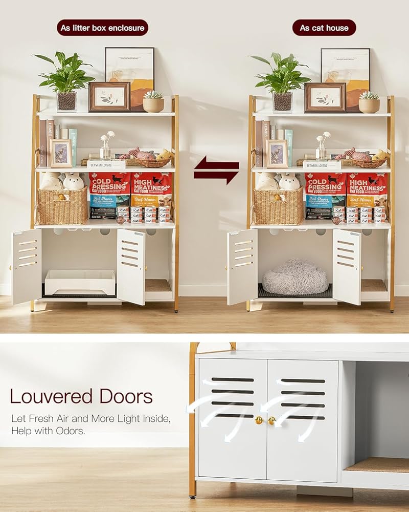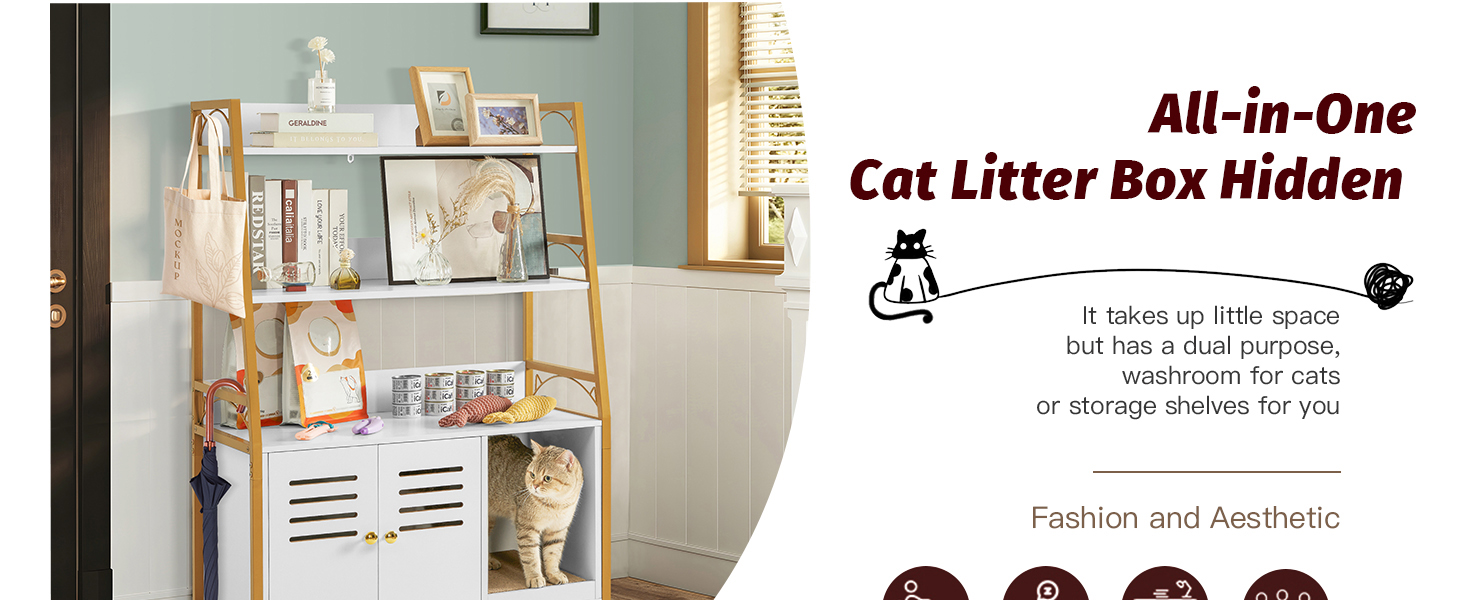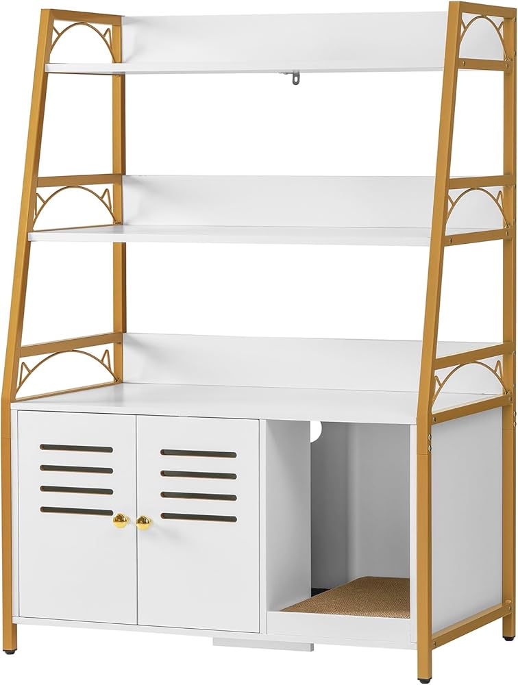متعدد الوظائف: صندوق الفضلات الكل في واحد المخفي يحافظ على مساحتك مرتبة ويوفر مجموعة من الميزات التي من شأنها تحسين منزلك. الحل النهائي لك ولقططك! الحجم الداخلي لحمام القطط: 19 بوصة طول × 17 بوصة عرض × 15.8 بوصة ارتفاع، مناسب لمعظم صناديق القمامة