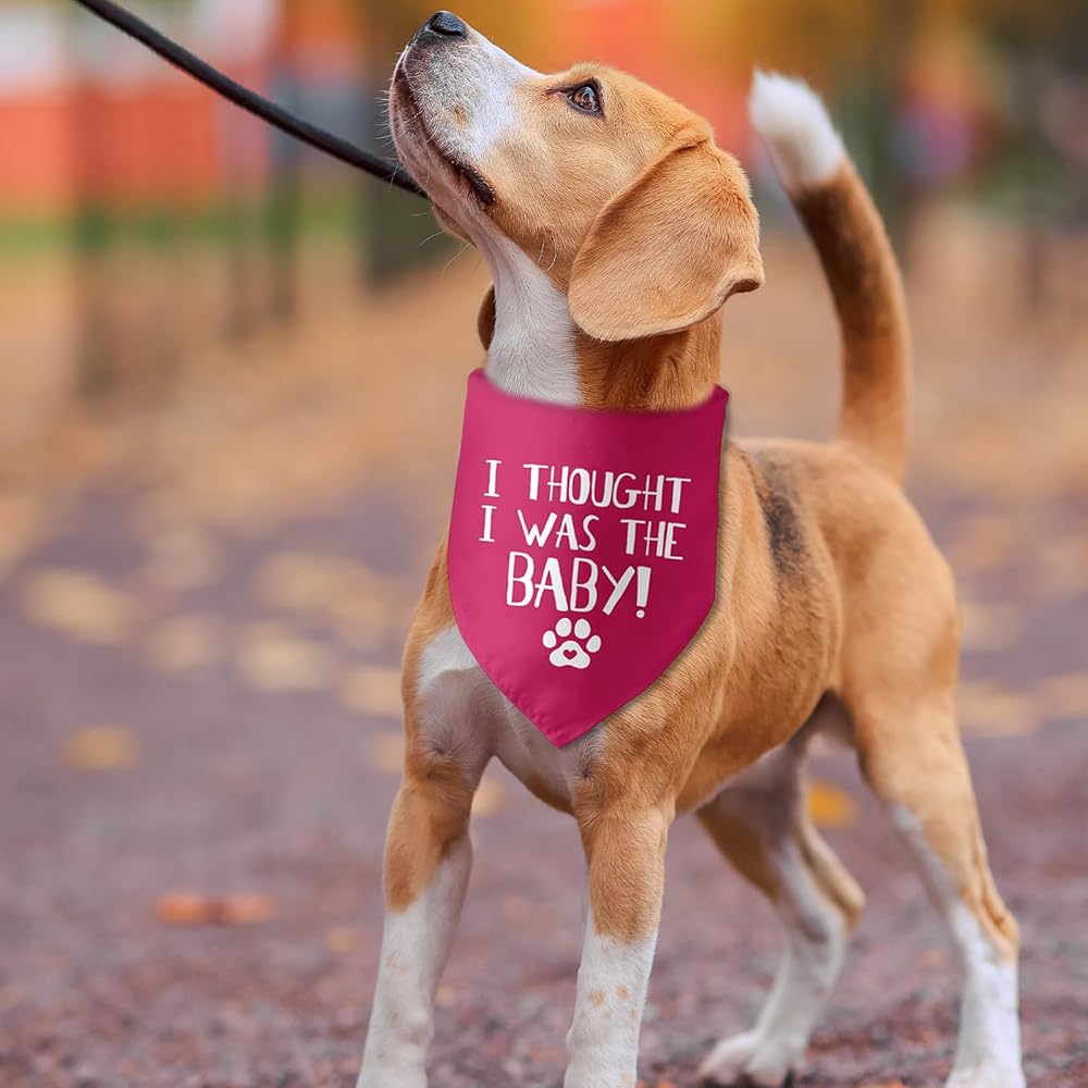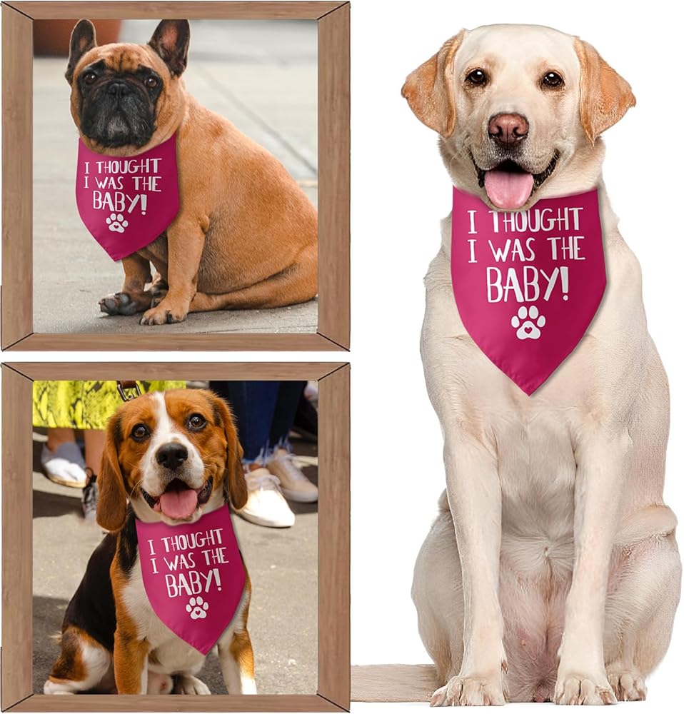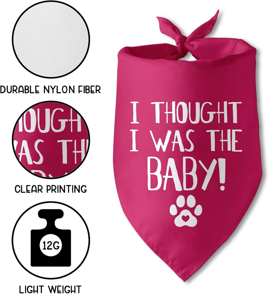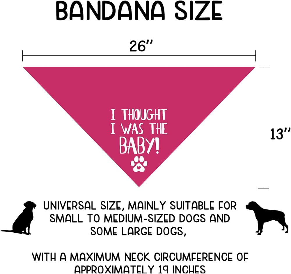 • 1.[Dog bandana pregnancy announcement]:The dog bandana with :"i thought i was the baby" pattern, this is a cool pregnancy announcement gift for pets . It is very suitable baby announcement gift of dog lovers.