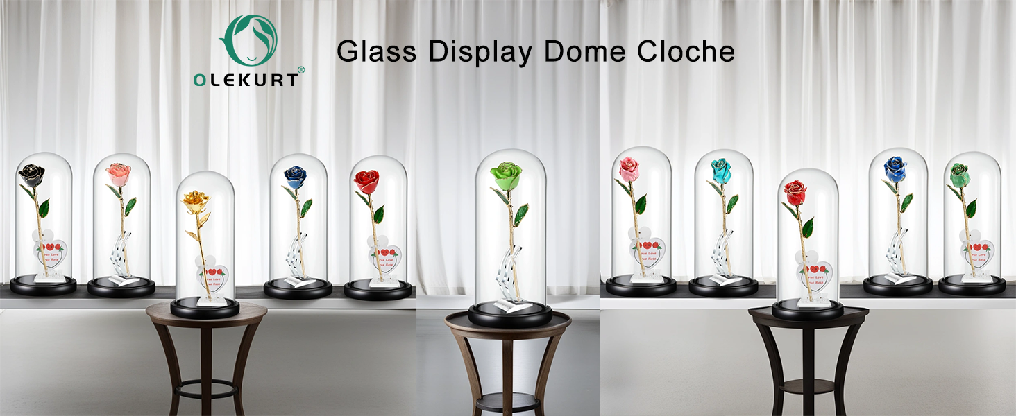تستخدم على نطاق واسع: قبة زجاجية من OLEKURT مع قاعدة تستخدم لعرض مجموعة واسعة من العناصر الزخرفية، بما في ذلك عرض الوردة الذهبية المفضلة لديك والمقتنيات والتحف والتماثيل الصغيرة وتنظيم الصدف والمجوهرات والشموع وغيرها من الأدوات الصغيرة