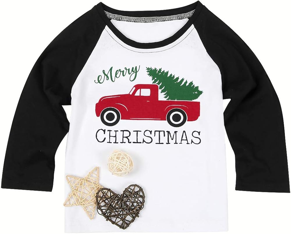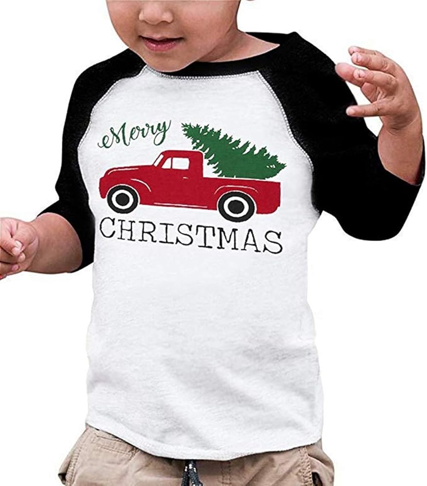 Newborn Baby Boy Girl Merry Christmas Tshirt Christmas Car Xmas Tree Cute Long Sleeve Raglan Christmas Shirt Top