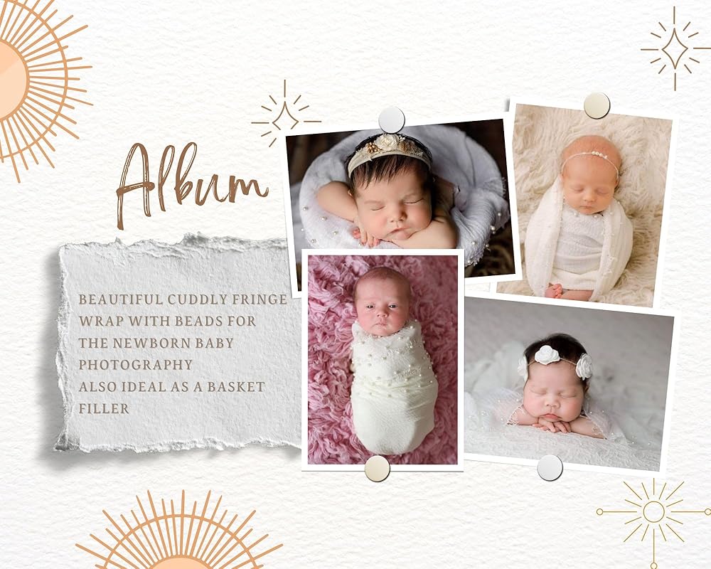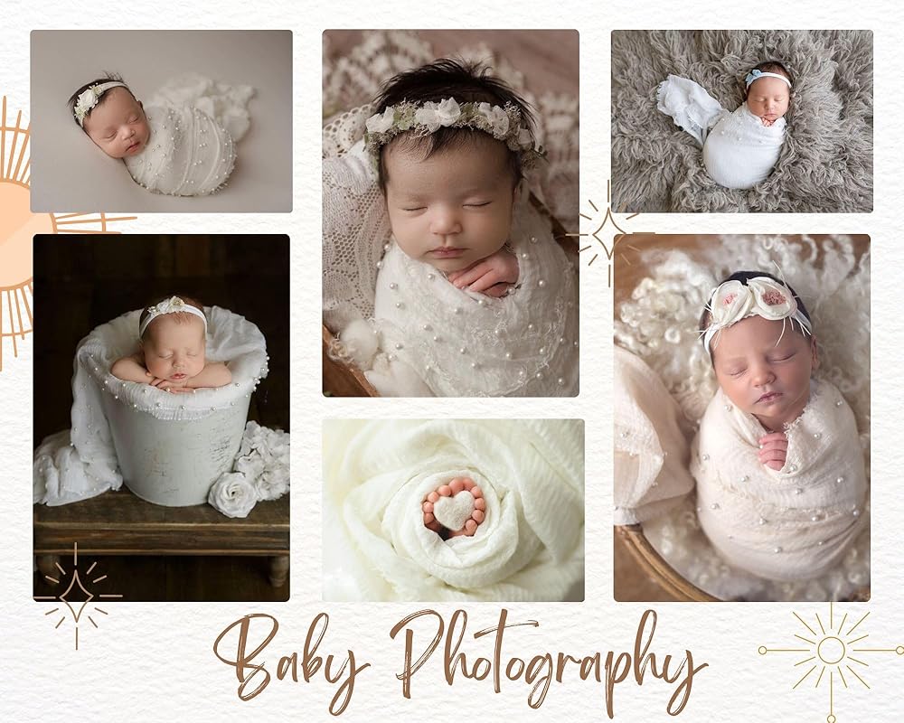 المقاس: 35 × 67 انش لفافة تصوير الأطفال، مناسبة للأطفال من عمر 0-3 أشهر. فائقة النعومة توفر للطفل لفافة لطيفة أثناء جلسة تصوير حديثي الولادة.