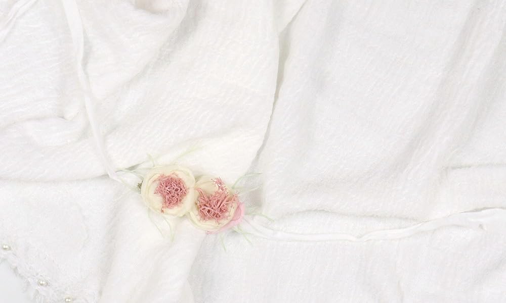 التصميم: غلاف عاجي ناعم جميل مع تفاصيل لؤلؤ على طول الحافة. اللآلئ الموجودة على اللف مصنوعة بعناية وتضيف لمسة من الرقي والبريق إلى التصميم. ناهيك عن عصابة رأس الزهور الرائعة كديكور. يتم ربطها بأمان بالقماش، مما يضمن أنها لا تشكل أي خطر على سلامة طفلك.