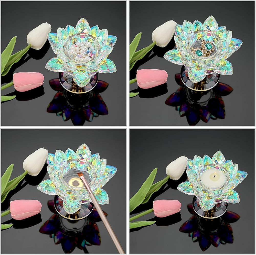 لا يمكن استخدام حامل شموع اللوتس هذا فقط لوضع الشموع أو كزينة لوتس عند عدم الاستخدام، ولكن أيضًا كصينية تخزين مزخرفة لوضع المجوهرات الصغيرة، أو كطبق تزيين أظافر أكريليك أو أكثر، هدية لوتس كريستالية فريدة للكريسماس أو عيد الشكر أو أعياد الميلاد للعائلة أو الأصدقاء.