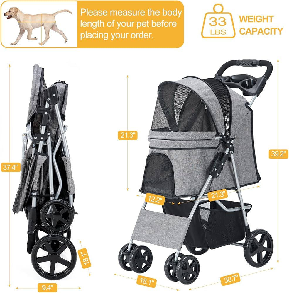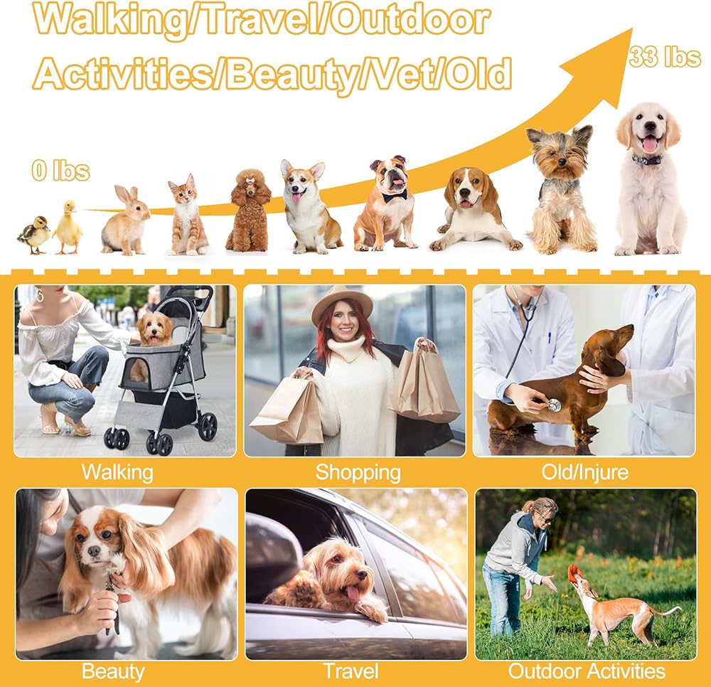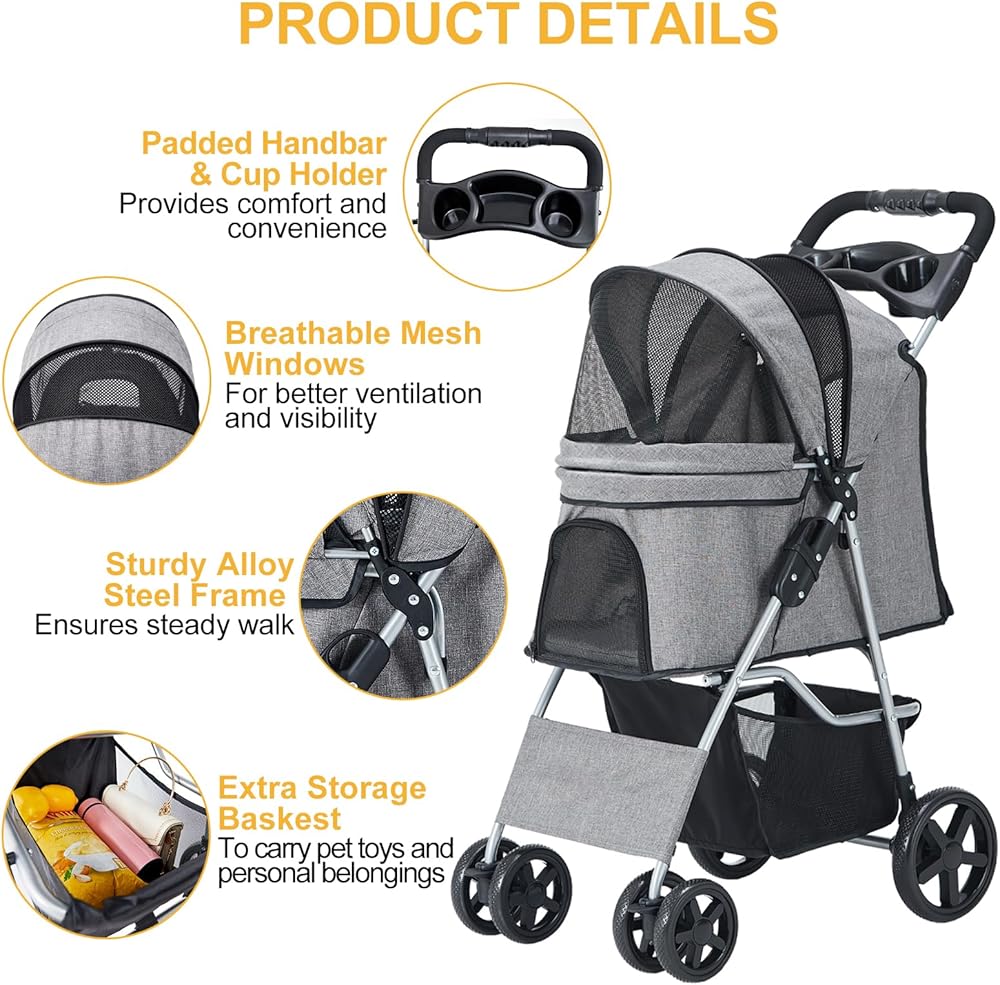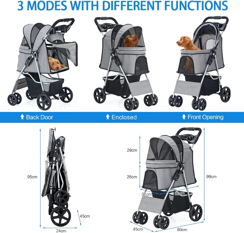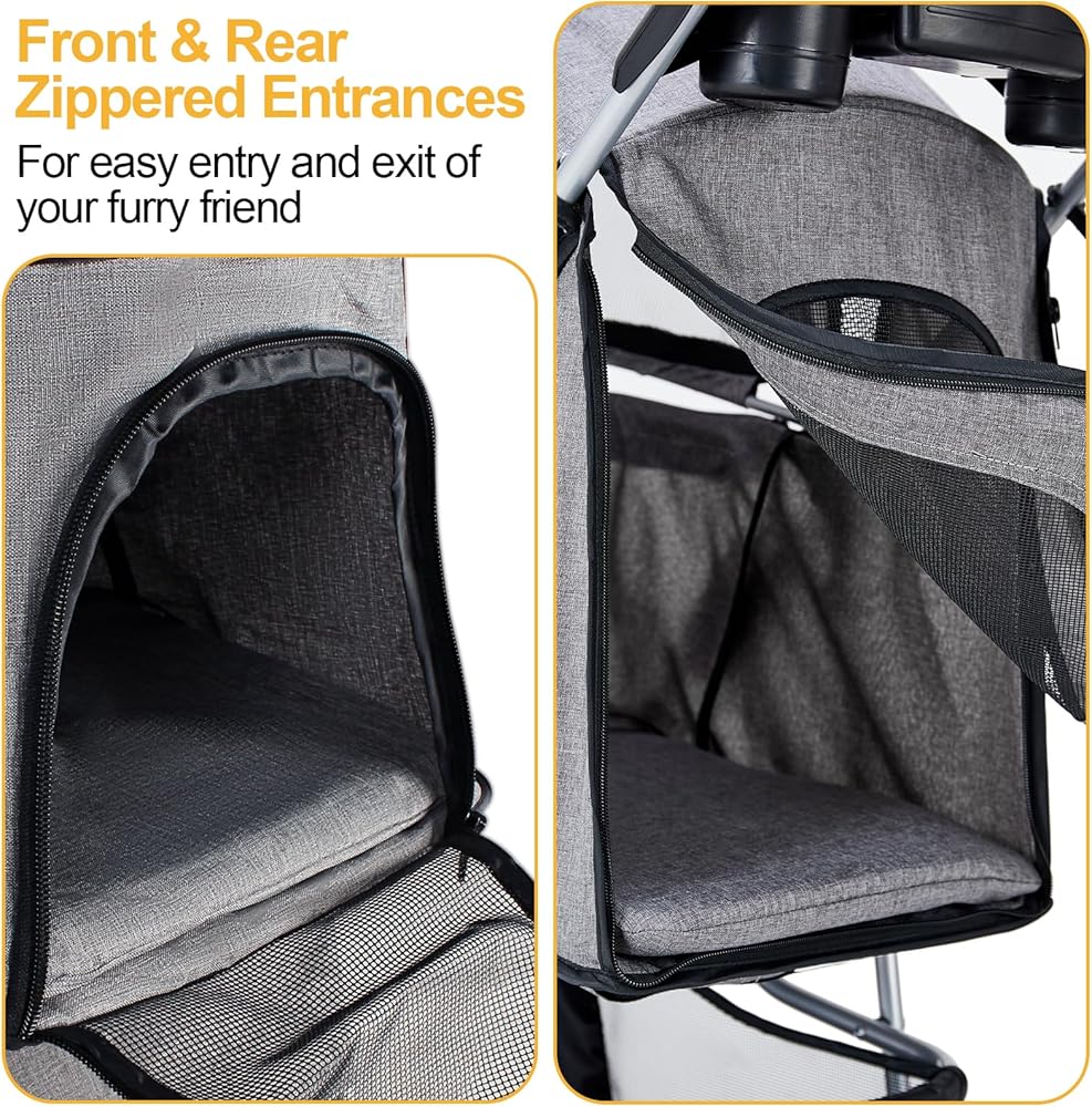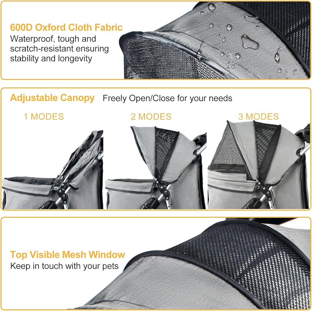【تصميم سهل الاستخدام】حامل أكواب على المقود وسلة تخزين واسعة في الأسفل مجهزة لوضع زجاجات المياه والمحافظ وألعاب الحيوانات الأليفة والهواتف المحمولة والمظلات وغيرها من المتعلقات الشخصية. يوفر المقود المبطن قبضة مريحة ونافذة علوية مع مظلة تضمن راحة حيوانك الأليف. بالإضافة إلى ذلك، يتم توفير حبلي أمان داخل المقصورة من أجل سلامة حيوانك الأليف ومنعه من الهروب عن طريق الخطأ وضمان أقصى قدر من الحماية لصديقك ذو الفراء.