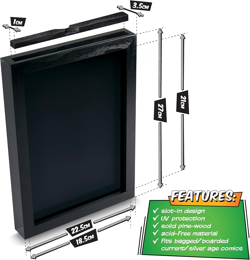 حماية دائمة - حافظ على الرسوم الهزلية الخاصة بك بالنعناع ومحمية من الغبار/الرطوبة. تم تجهيز إطار صورة الكتاب الهزلي بأكريليك مقاوم للأشعة فوق البنفسجية لمنع التعرض لأشعة الشمس من بهتان الأغطية النابضة بالحياة بمرور الوقت.