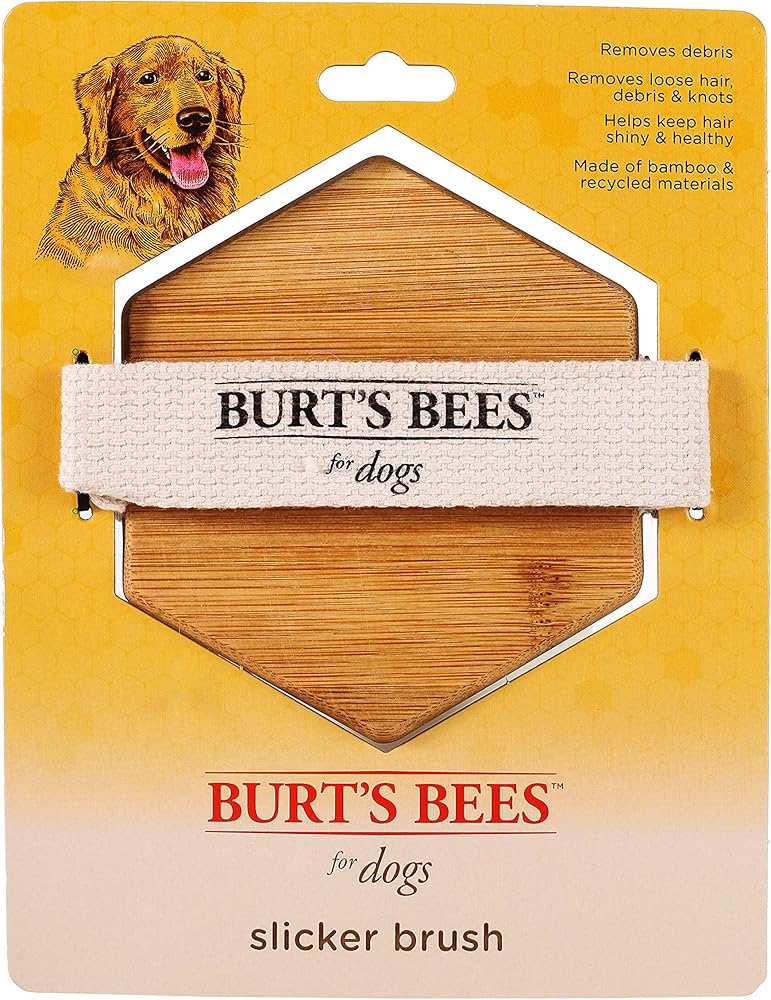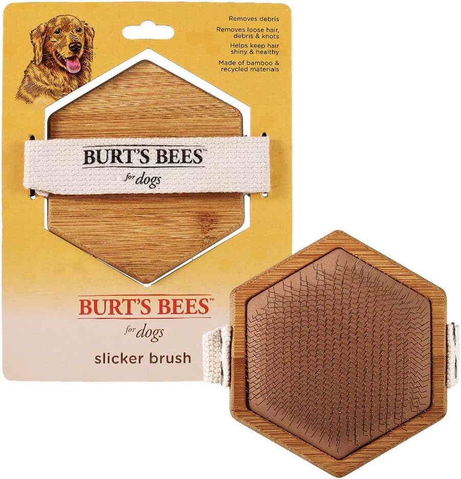 Keep your pooch soft & sleek with Burt's Bees for Pets Bamboo Slicker Brush. Burt's Bees Slicker Brush was designed to remove loose fur prevent matting and help keep coats shiny and soft This easy to use dog brush is intended for daily use. Just a few strokes and your canine companion will be looking and feeling its best. Since 1984 Burt's Bees has been working with nature to create products that nurture your skin. We believe that pets are family so we're bringing the same natural attention and care to your closest furry friends. Let your pet enjoy a sleeker coat with this dog brush. DIRECTIONS: Gently brush in the direction of fur growth (from skin out) starting at the front of your pet and working your way to the back. Do not drag bristle tips along the skin and use caution around the dog's face ears and sensitive areas. Brush small areas at a time to prevent tugging while brushing. Repeat brushing as needed. Dog brushes for grooming large dogs are important dog stuff and dog grooming supplies. Burts bees dog brushes also include a dog deshedding brush, a puppy brush, a dog comb, a slicker brush for dogs, a dog undercoat brush, a pet grooming brush, a pet brush for all dogs, and so many other dog brushes. Burts bees dog hair brushes are great for dogs but burts bees also has cat combs and cat grooming supplies like a cat brush. YOUR SATISFACTION IS OUR PRIORITY*: If you have any questions or feedback, please contact us directly at Fetch for Pets. *Based on last 52 weeks Nielsen sales data measured in August 2020.
