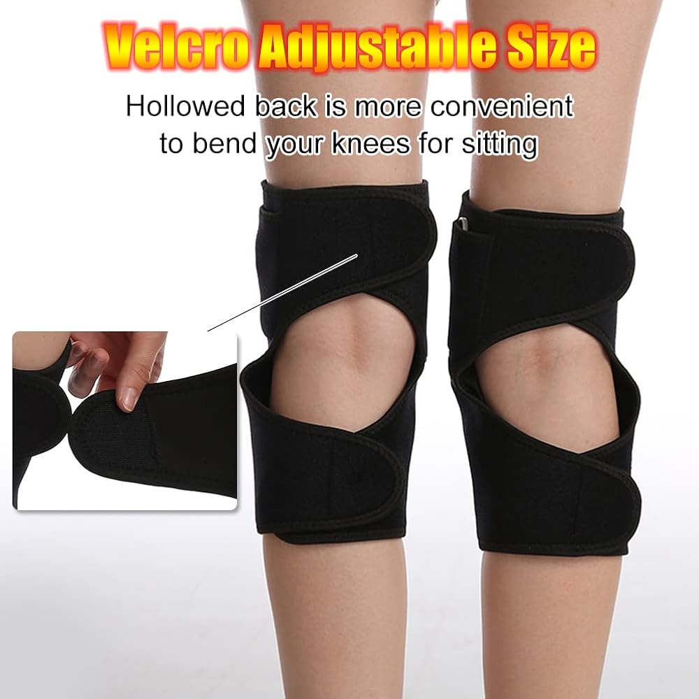 【Customizable Size & Comfortable 】The adjustable velcro straps secure the knee heat pad in place, designed to wrap around knees, one size suitable for most people. Hollowed back side design is more convenient to bend your knees for sitting, walking