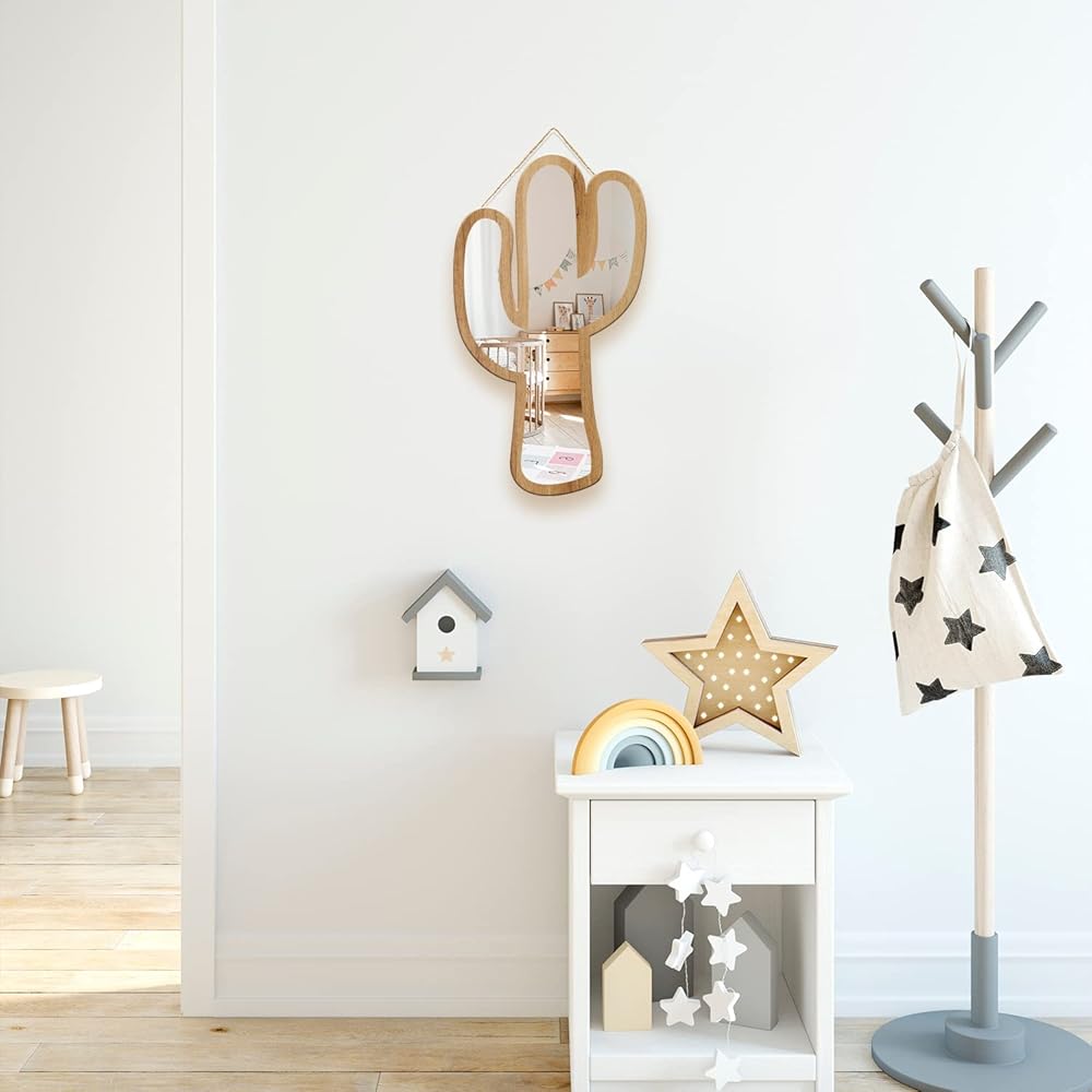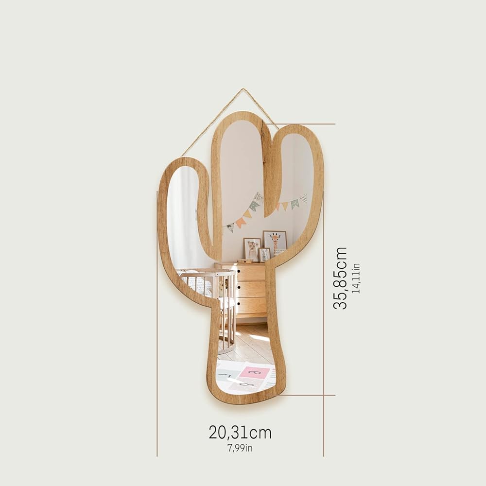 تم تصميم مرآة الحائط الأكريليك هذه بإطار خاص مصنوع من خشب الزان الطبيعي وتتميز بتصميم صبار مفرغ خصيصًا لتكون صديقة للبيئة بسبب استخدام الخشب الطبيعي القابل لإعادة التدوير، وهو أيضًا مادة متينة.