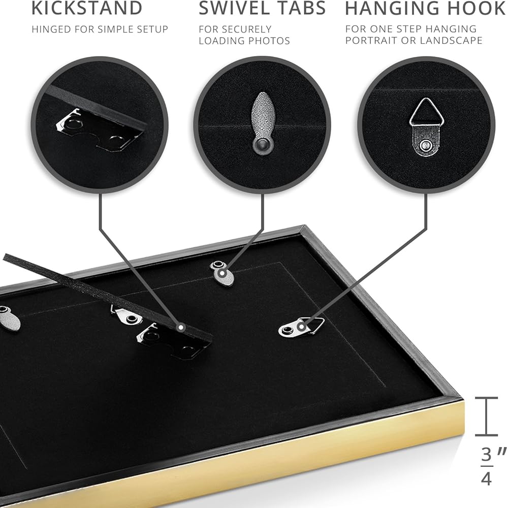 تتضمن - 3 إطارات ذهبية وردية، تناسب الصور أو المطبوعات القياسية مقاس 5 × 7 مع فتحة تكشف عن صورة مقاس 4.5 × 6.5 بوصة؛ زجاج عالي الوضوح للوضوح وحماية الصورة