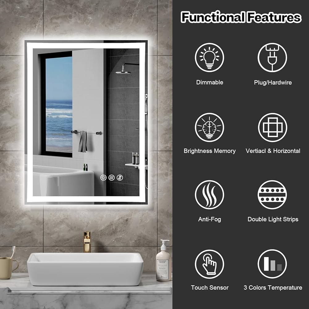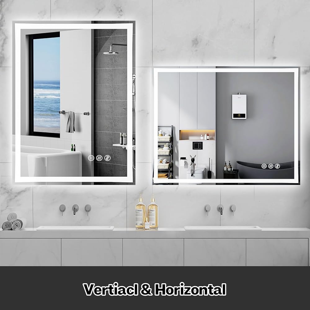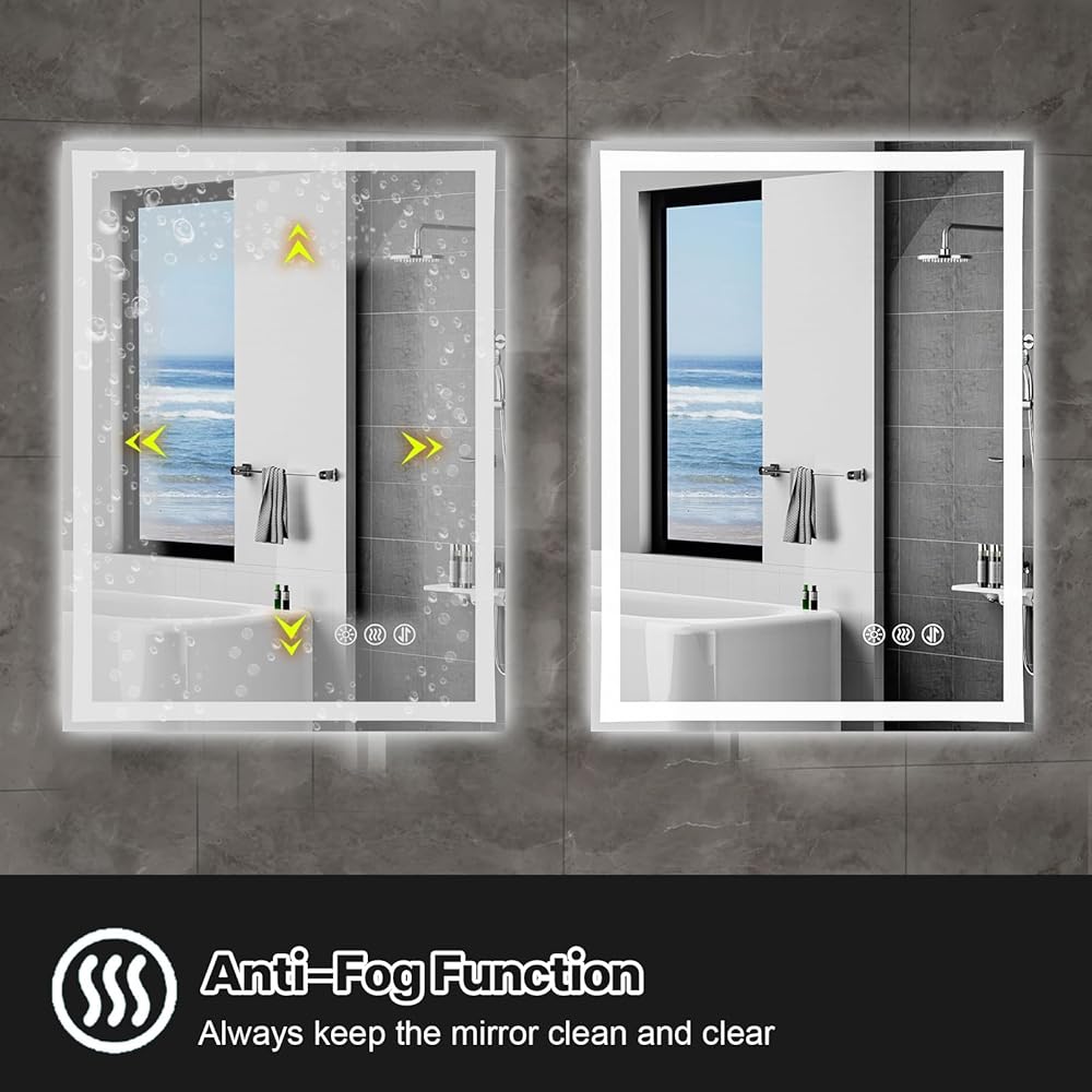 【مضادة للضباب】مرآة LED المطورة للحمام توسع المنطقة المضادة للضباب، وتحل مشكلة التأثير السيئ المضاد للضباب للمرايا الخفيفة في السوق. انقر فوق زر مكافحة الضباب للتحكم في تشغيل/إيقاف مكافحة الضباب.