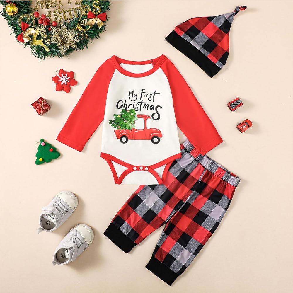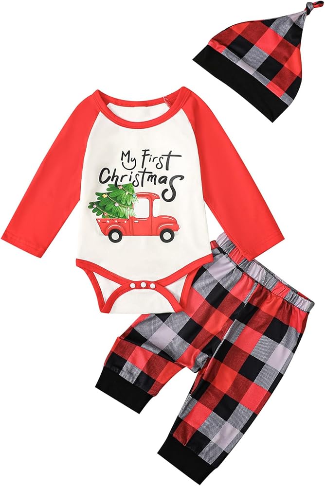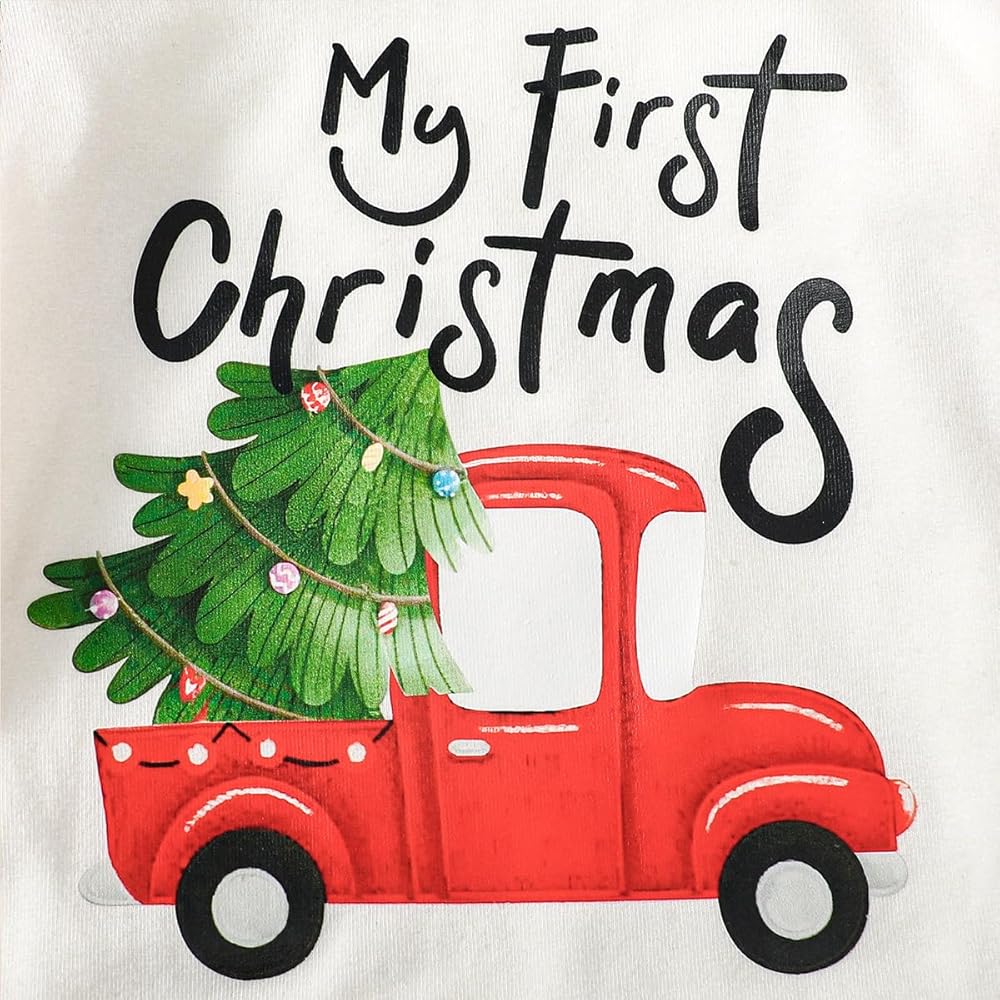 - ملابس عيد الميلاد للأولاد حديثي الولادة مناسبة لهدية عيد الميلاد الأول وملابس شجرة عيد الميلاد المنقوشة