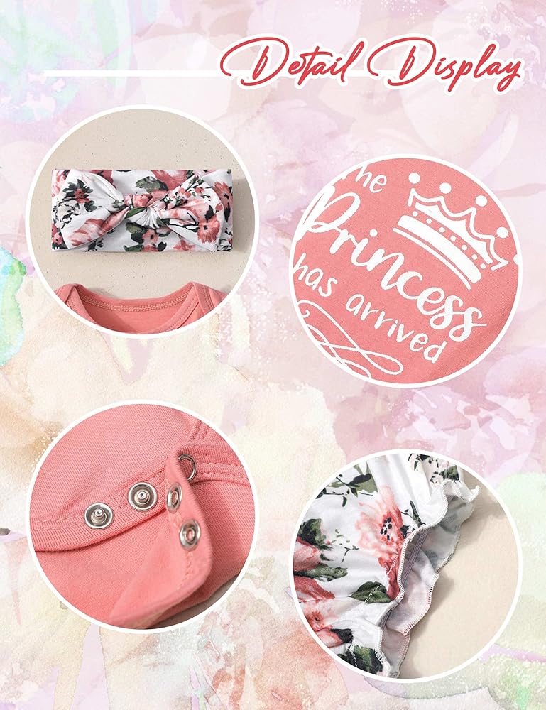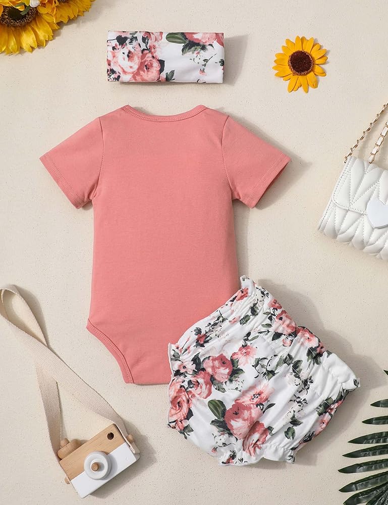 🌺🌺العبوة: ملابس لطيفة للفتيات حديثي الولادة كهدايا الصيف. سوف تحصل على 1 × رومبر مطبوع عليه حروف للفتيات الصغيرات + 1 × بنطال بنمط زهور + 1 × عصابة رأس لطيفة. طقم رومبر جميل مطبوع عليه حروف ومجموعات قصيرة بنمط الأزهار تجعل طفلتك أكثر روعة في الصيف الحار. وصلت حديثًا مجموعات قصيرة متطابقة للفتيات الصغيرات وهي أنيقة.