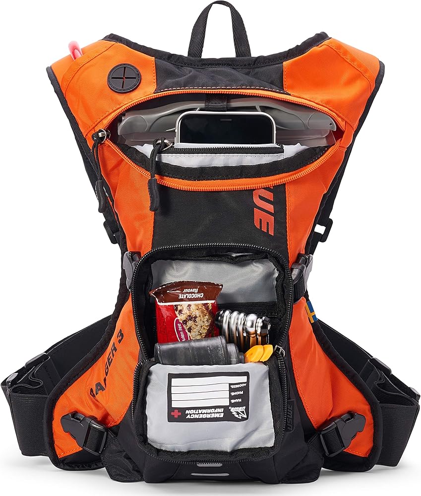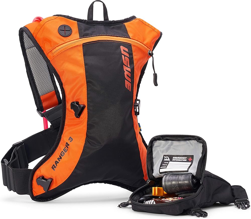يو اس دبليو إي عبوة ترطيب سعة 3 لتر من رينجر مع كيس ماء سعة 2.0 لتر/ 70 اونصة، شنطة ظهر للدراجات النارية اندورو والطرق الوعرة، خالية من الارتداد - برتقالي واسود