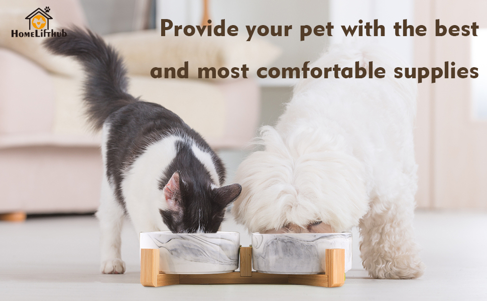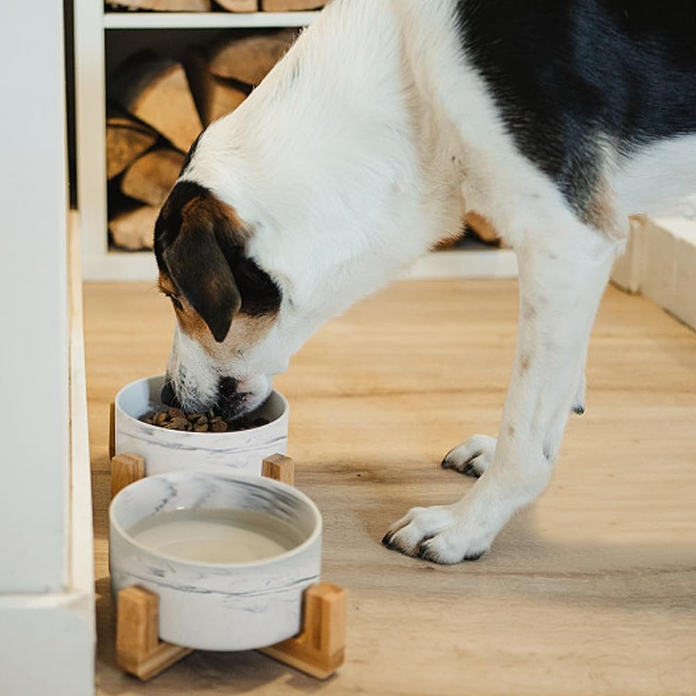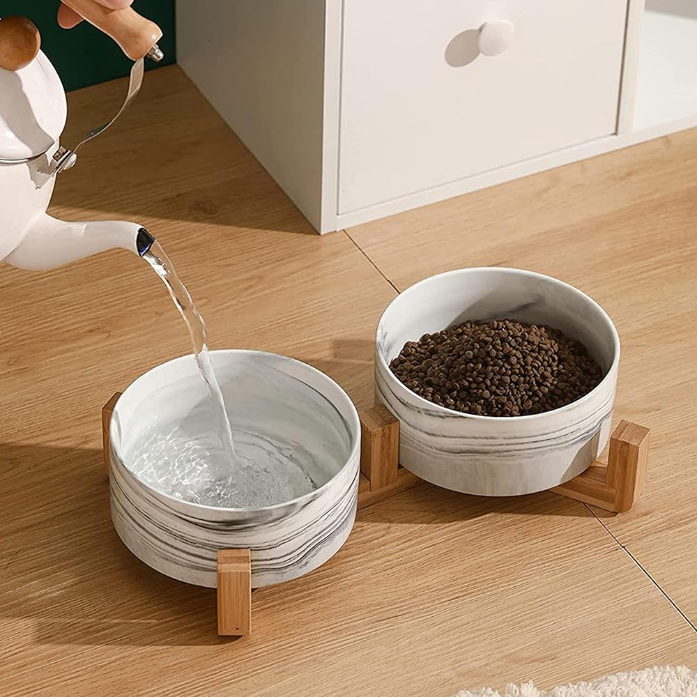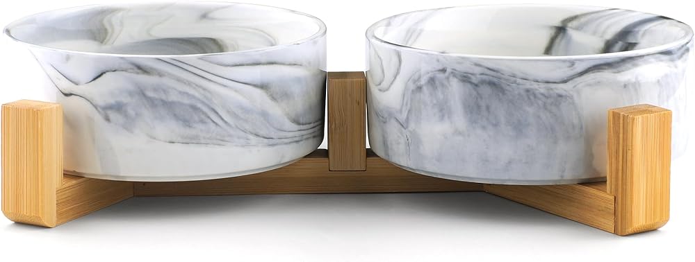 Bamboo Wood Stand:The bamboo wood bowl stand is finely sanded and polished to prevent sticking and scratching, taking care of you and your cat's health. The bamboo wood stand and marbled ceramic bowl are simple and beautiful, and will fit perfectly into any home decor style. It also makes a perfect gift to surprise and delight pet lovers.