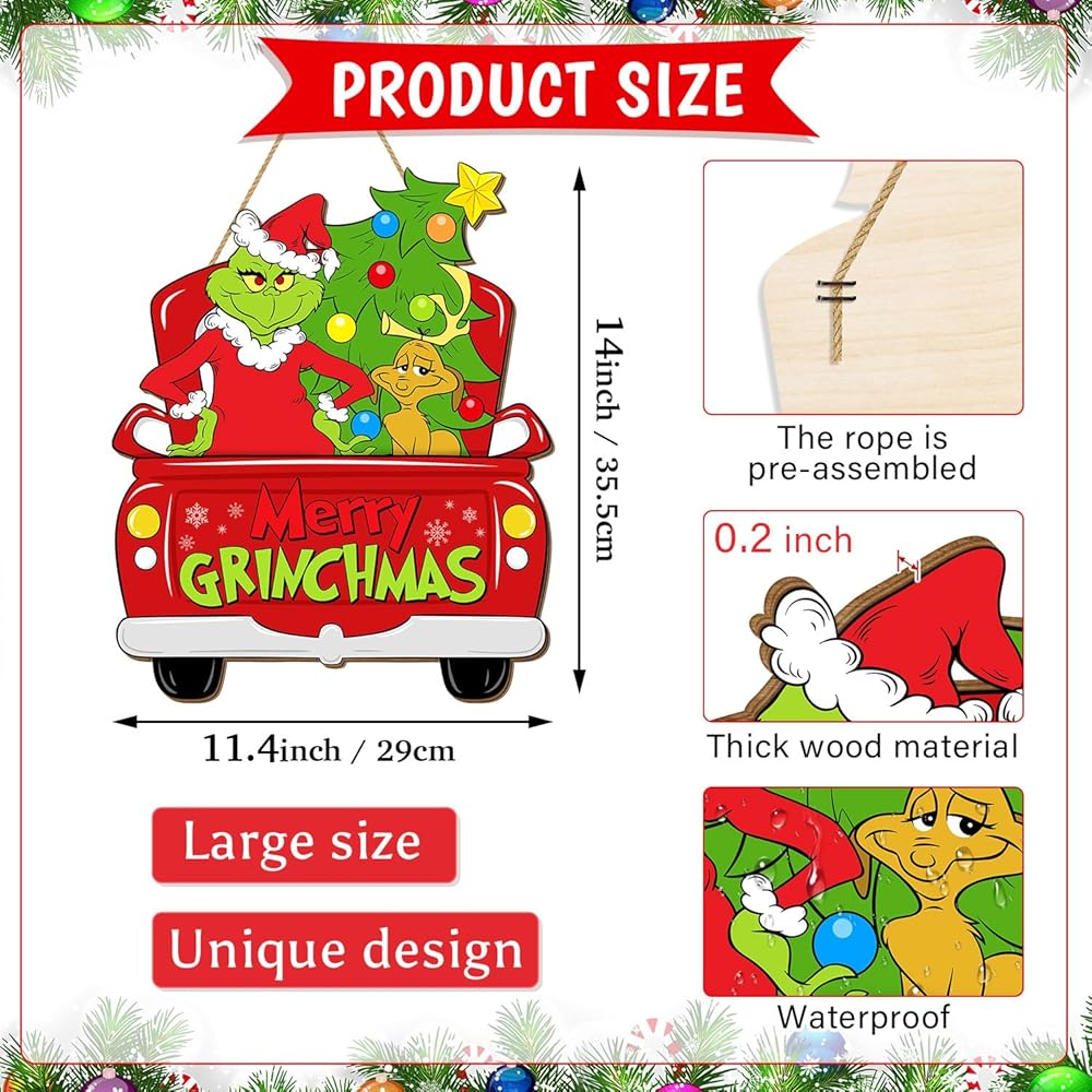 ❄ما ستحصل عليه--تأتي العبوة مع قطعة واحدة من لافتة باب عيد الميلاد الخشبية. الحجم: 35.5*29 سنتيمتر (14*11.4 بوصة). لافتة خشبية كبيرة الحجم لتلبية احتياجات الديكور الخاصة بك. مناسبة للتعليق الداخلي والخارجي. هذه اللافتة الرائعة مثالية لتزيين منزلك في موسم العطلات.