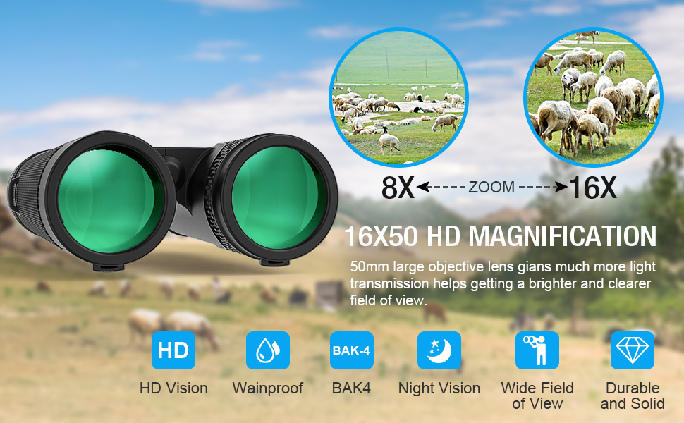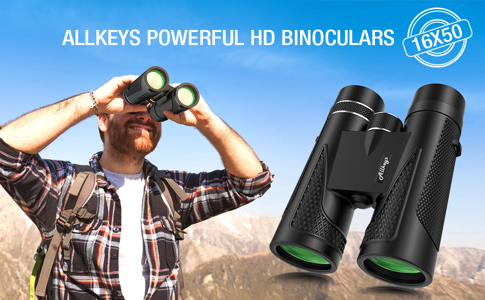 【مناظير قوية عالية الدقة 16x50】 مناظير Allkeys قابلة للحمل ومقاومة للماء وذات مظهر عصري، مصممة بتكبير قوي 16 مرة، وعدسات شيئية كبيرة 50 مم، ومجال رؤية كبير 367 قدمًا/1000 ياردة، مثالية لمشاهدة الطيور والصيد والمشي لمسافات طويلة والرياضة، التخييم، وغيرها من الأنشطة في الهواء الطلق.