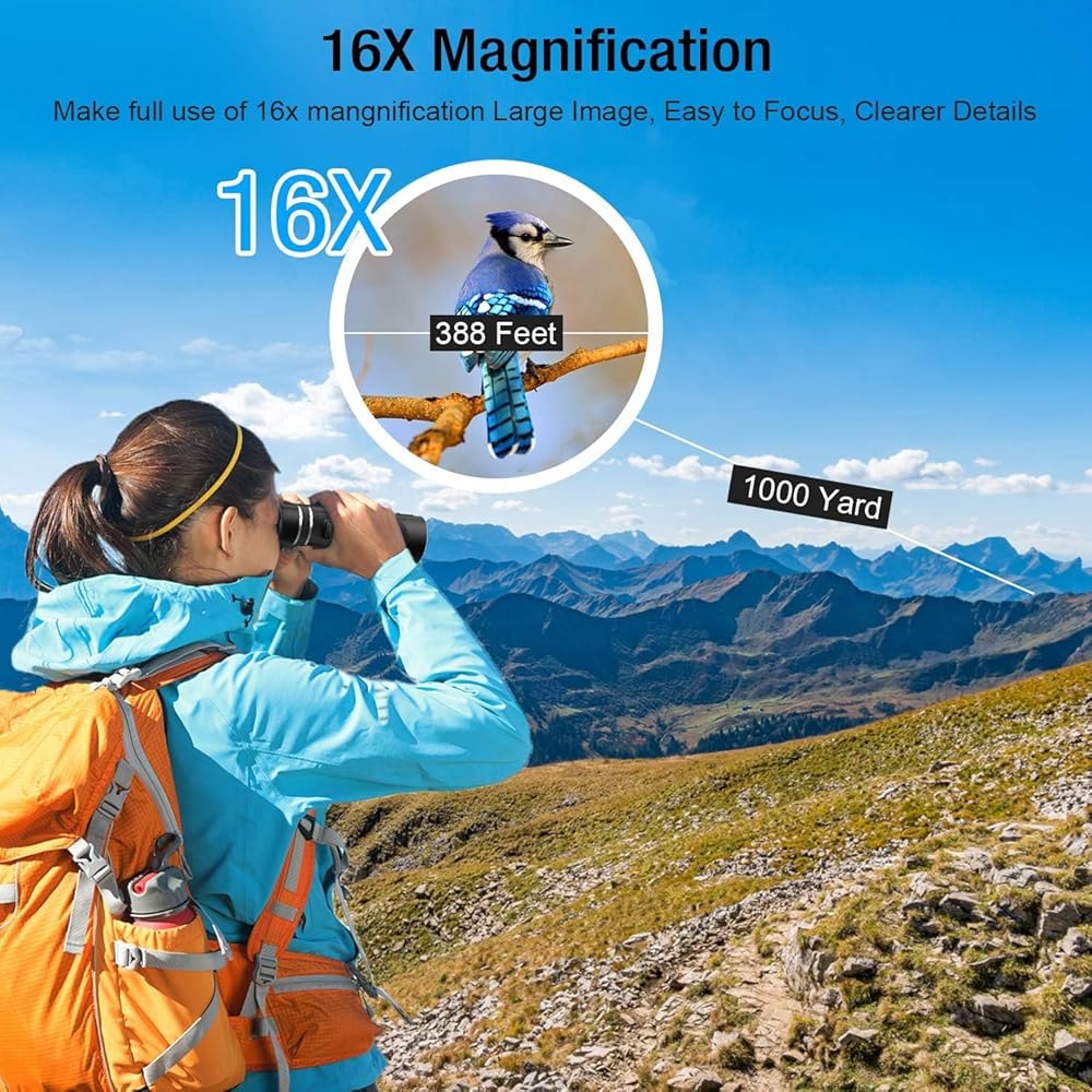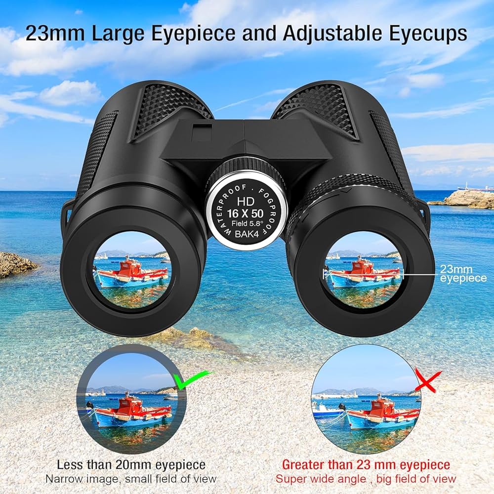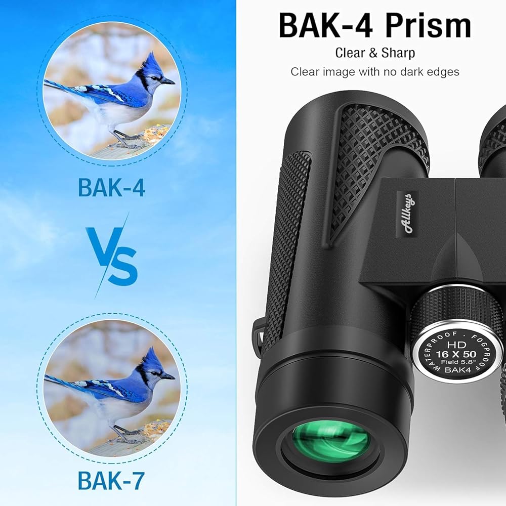 مناظير Allkeys 16X50 للبالغين والأطفال، مناظير احترافية عالية الدقة مع رؤية ليلية منخفضة الإضاءة، مناظير مقاومة للماء بعرض كبير 23 مم لمشاهدة الطيور والصيد والرياضات الخارجية والحفلات الموسيقية