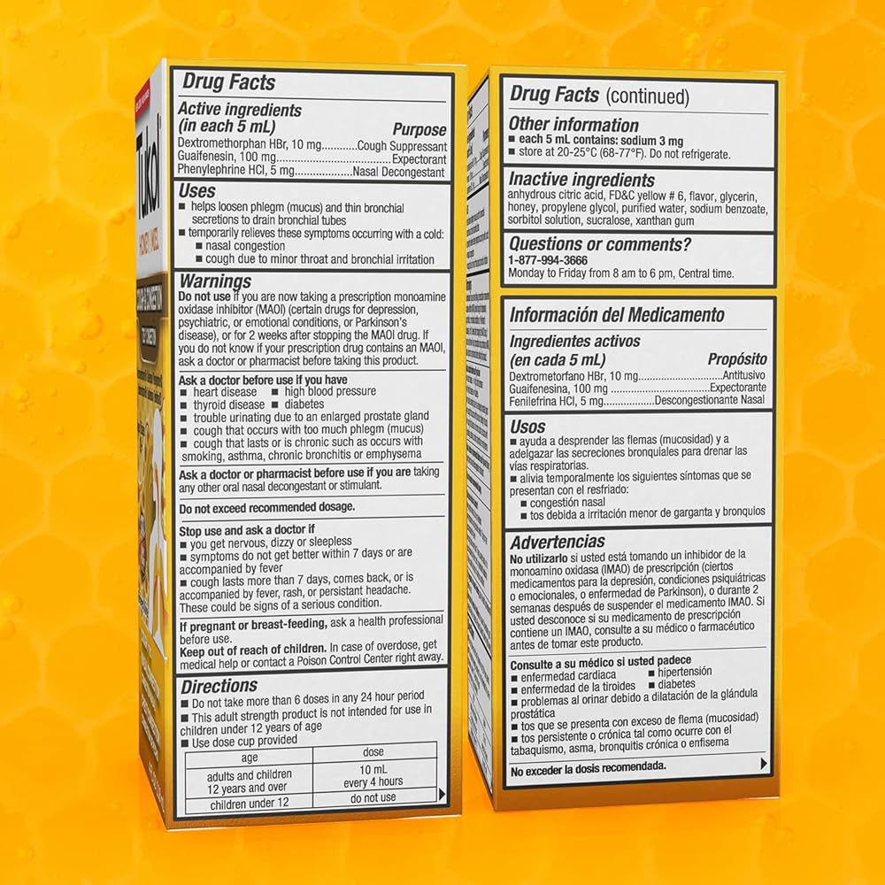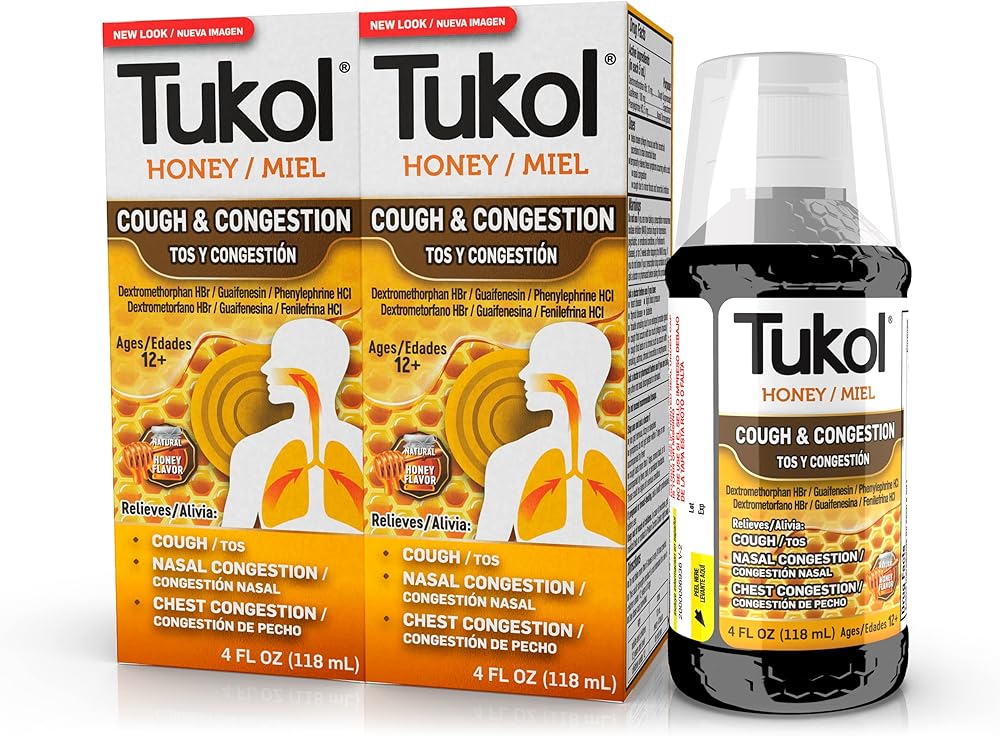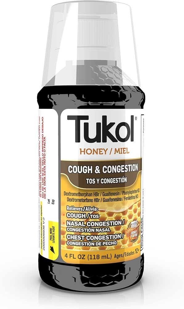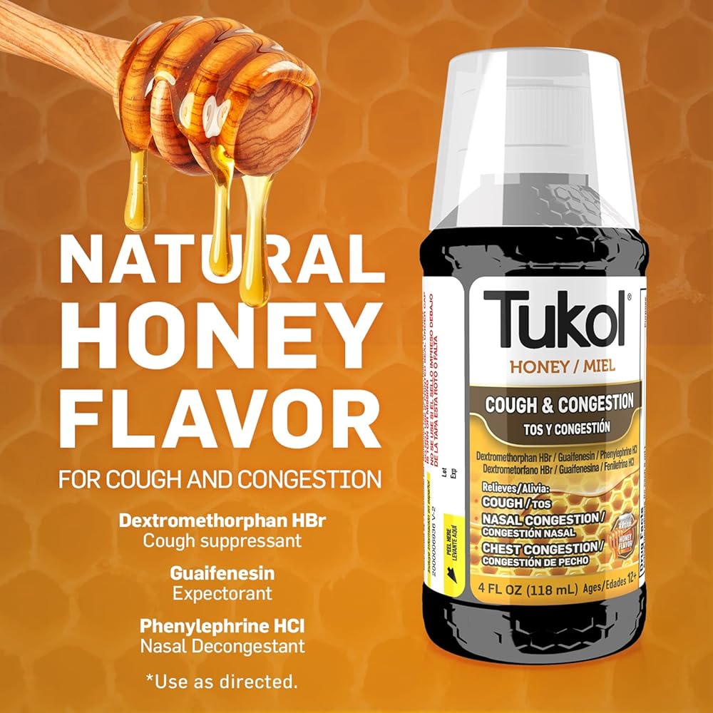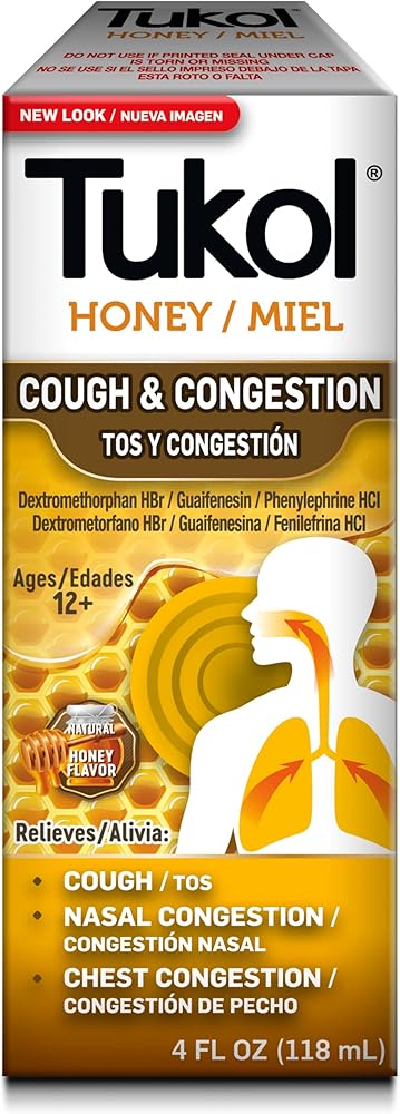 Tukol X-Pecto Miel Multi Symptom Cold provides powerful cold symptom relief. This non-drowsy medication is an expectorant, relieves nasal congestion and suppresses coughs with natural honey. This adult medication has a soothing honey flavor and relieves sore throats, colds and coughs to have you feeling better in no time.
