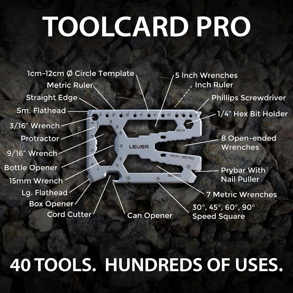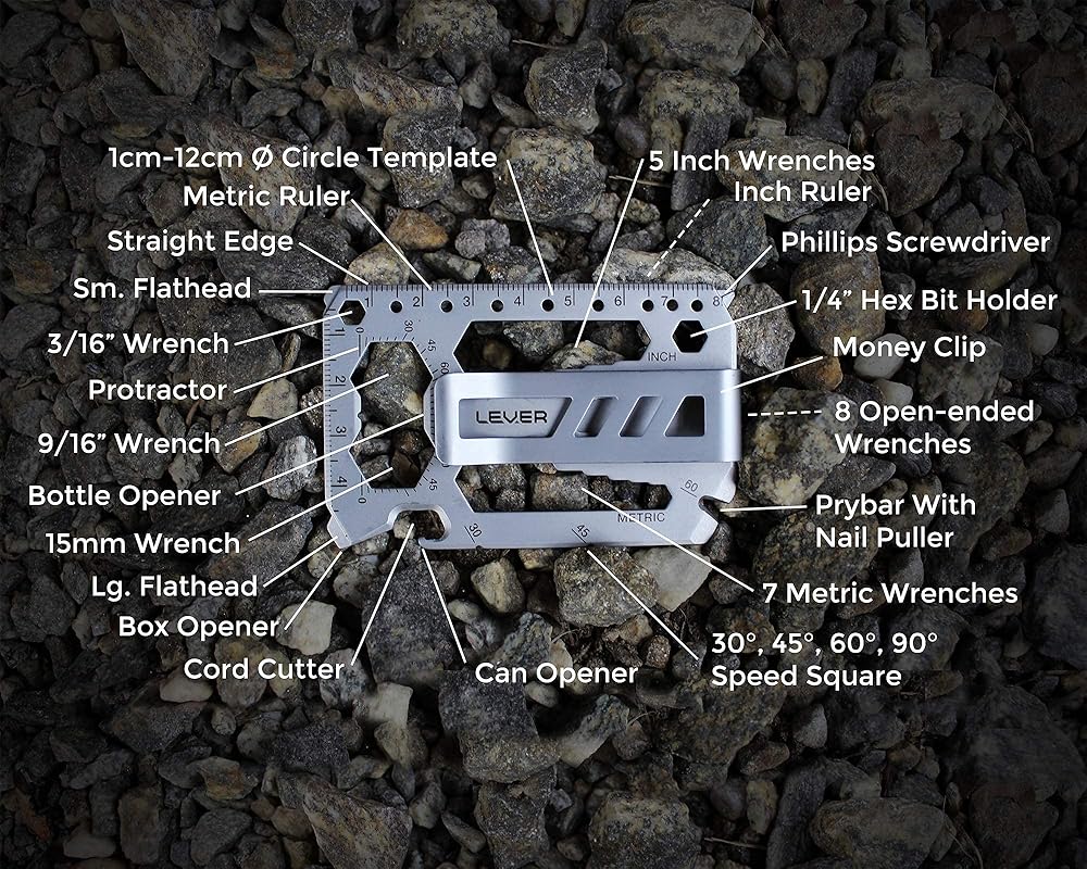 أنجز المهام - قم بإنهاء المهام اليومية بسرعة. تحتوي هذه الأداة المتعددة EDC على فتاحة زجاجات لبطاقات الائتمان، وفتاحة صناديق، و24 مفتاح ربط، ومفك براغي، وشريط بريبار، وقاطع سلك، ومساطر، وفتاحة علب التخييم والمزيد.