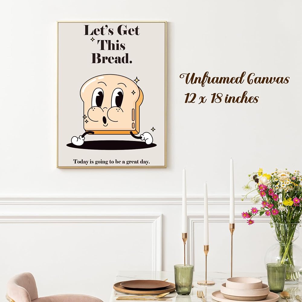 ديكور مكتب خبز مضحك رترو - هذا الملصق القماشي ذو الطراز العتيق "Let's get this bread" مما يجعله ديكورًا رائعًا للمكتب والشقق الكلية.