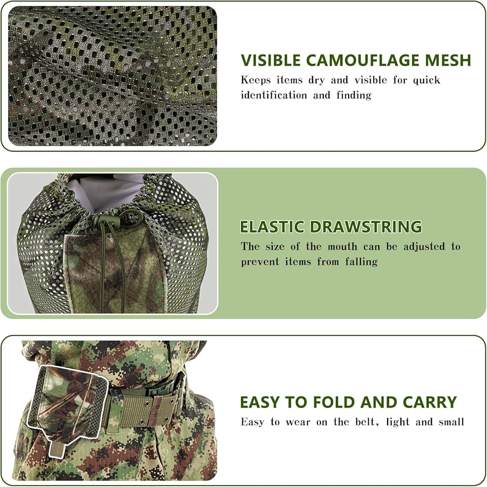 كيس تفريغ متين: مصنوع من مادة النايلون 500D ونسيج شبكي عسكري، يسمح لجيوبك بالتنفس بحرية، وخفيف الوزن ولكن متين، ويمكن أن يبقى جافًا دائمًا