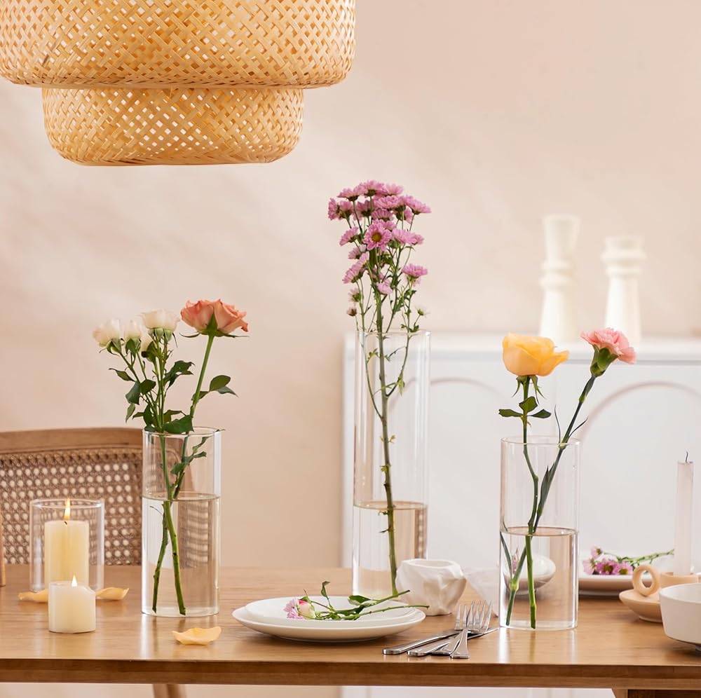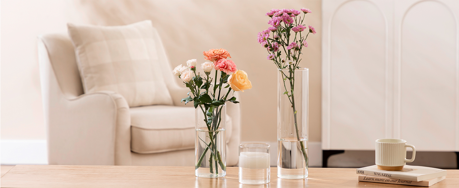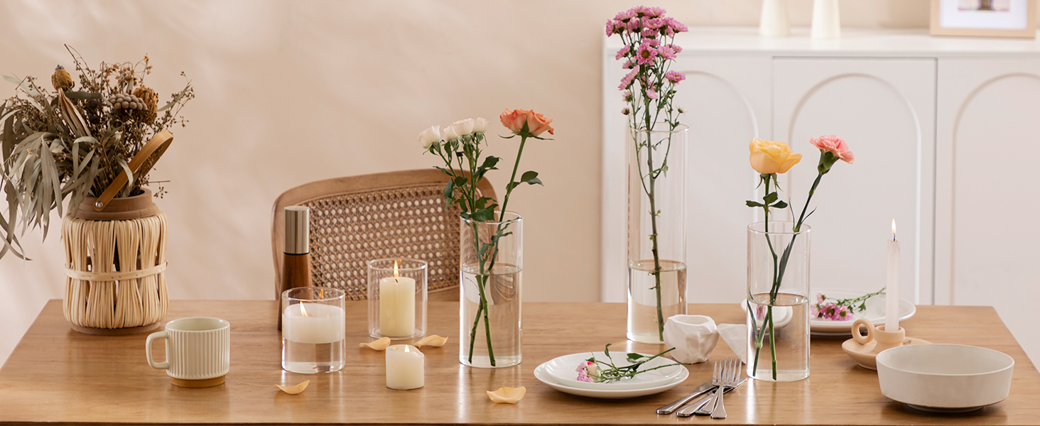 【مناسبات قابلة للتطبيق】تعمل هذه المزهريات الأسطوانية بشكل مثالي كقطع مركزية للطاولة، وحاملات شموع زجاجية وديكورات الزفاف. على الرغم من أنها شائعة، إلا أنها الديكور الأكثر فعالية لجميع المناسبات تقريبًا، مثل المطاعم والحدائق وحفلات الزفاف والحفلات وديكور المنزل. هدية مثالية لأعياد الميلاد وعيد الشكر وحفلات الزفاف وعيد الأم وأعياد الميلاد والذكرى السنوية؛ ديكورات جميلة لرف الكتب، والطاولة، والنوافذ، والخزانة، والمطبخ، وغرفة الطعام، وغرفة المعيشة، والمكتب، إلخ.
