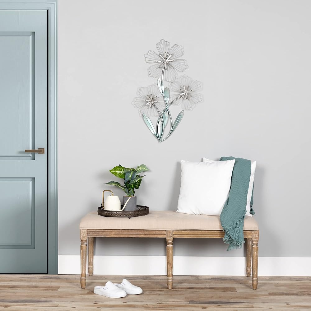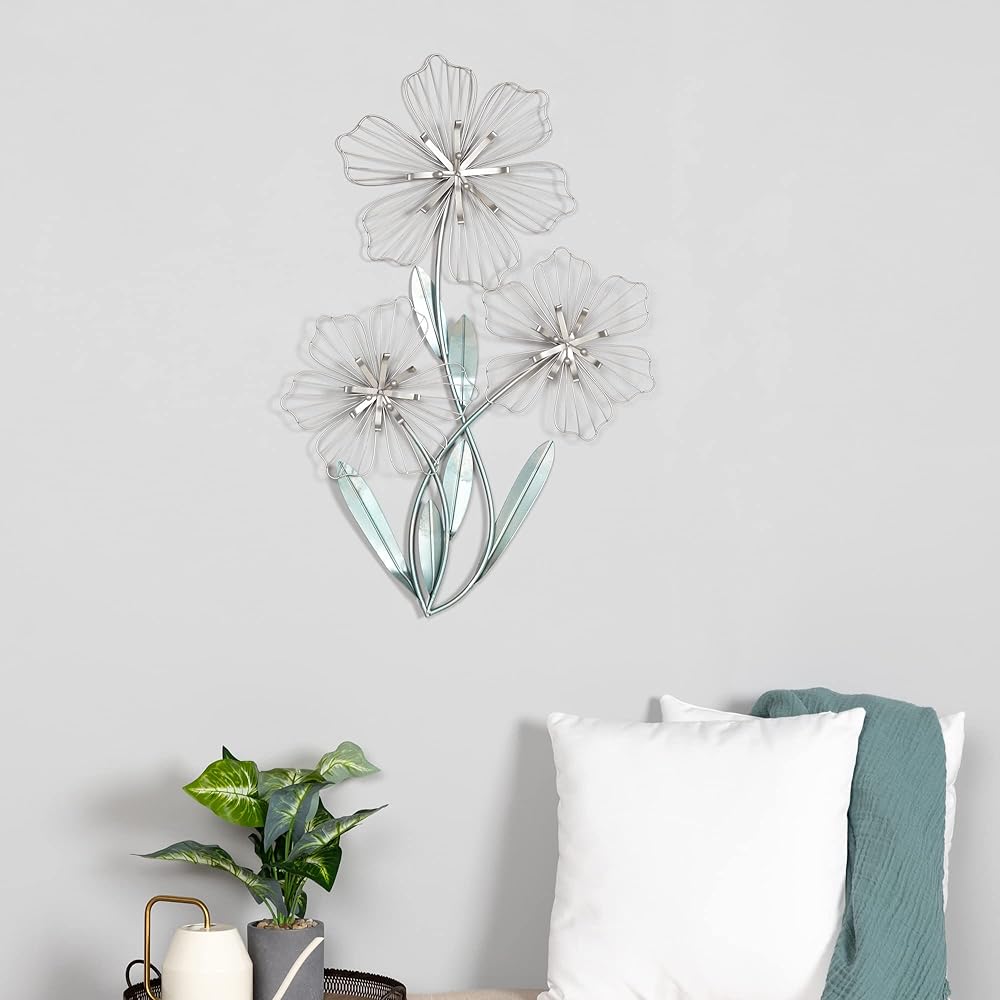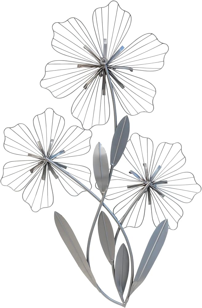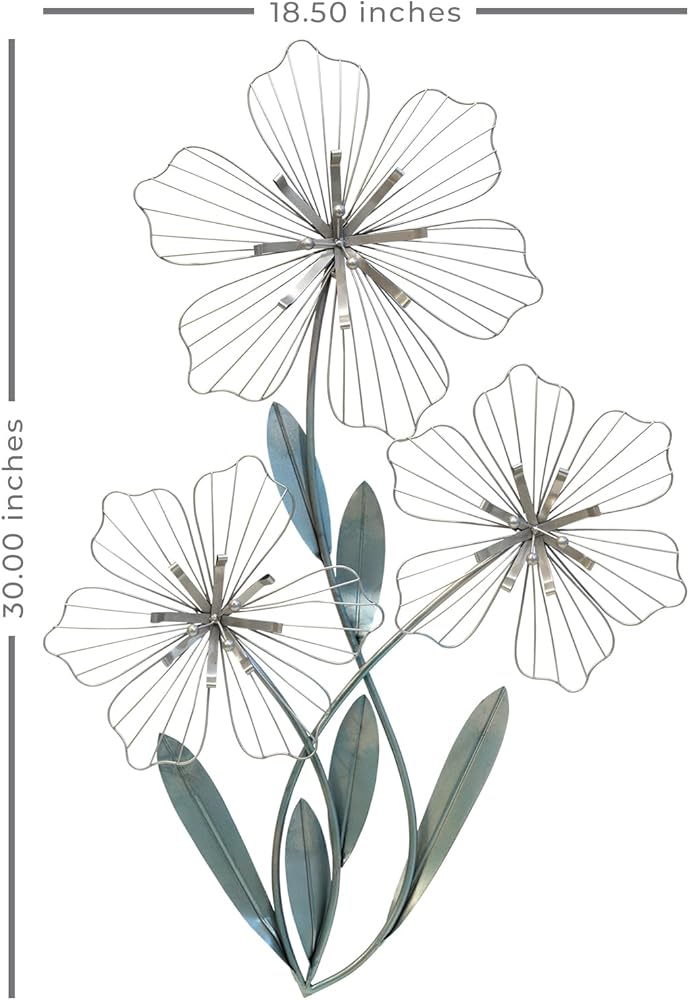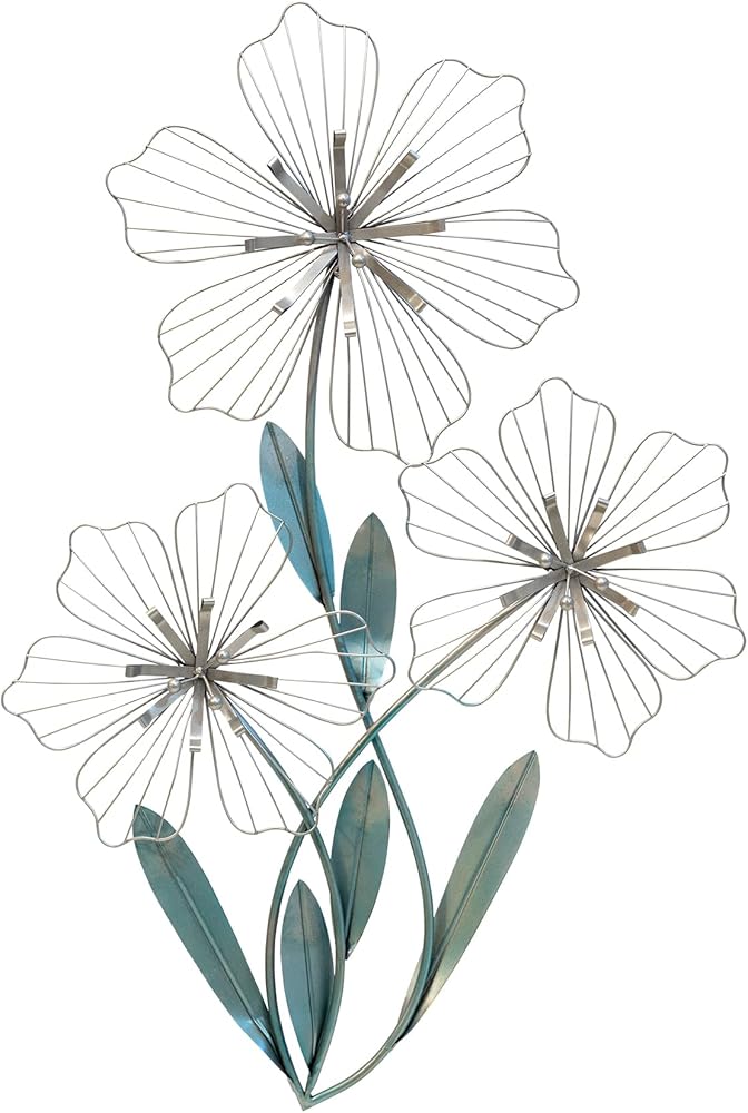 • اجعل جدارًا ساديًا في منزلك مع ديكور الجدار ثلاثي الأزهار. مصنوعة من معدن متين مع الفضة والأزرق، هذه القطعة ساحرة وجميلة. اعرضها في منزل عصري من أجل شعور متماسك.