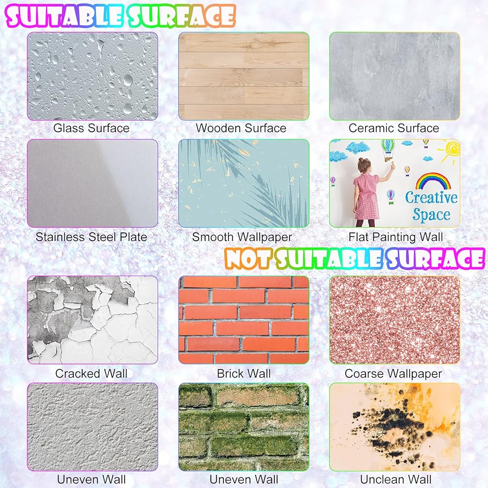سهلة الاستخدام والإزالة: مناسبة للأسطح المختلفة، مثل الجدران والأبواب والنوافذ والخزانة وما إلى ذلك؛ إذا قمت بلصق الجدار عن طريق الخطأ في المكان الخطأ، يمكنك استخدام سكين لرفع زاوية ملصقات الحائط بنمط يونيكورن بلطف وتقشيرها لإعادة الضبط؛ يرجى استخدامها على سطح جاف ونظيف وأملس للحصول على تأثير أفضل