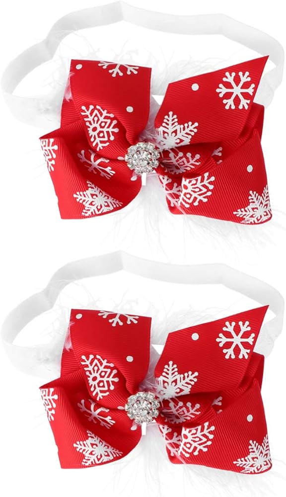 Baby Girls Bowknot Headbands, 2Pcs Christmas Hair Bow Bands Elastic Headwraps with Snowflake Decoration Accessories for Newborns Infant Toddler