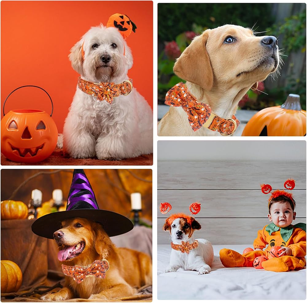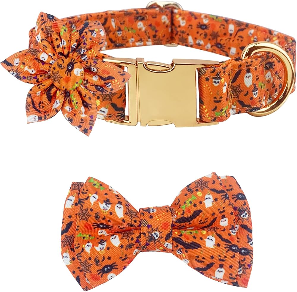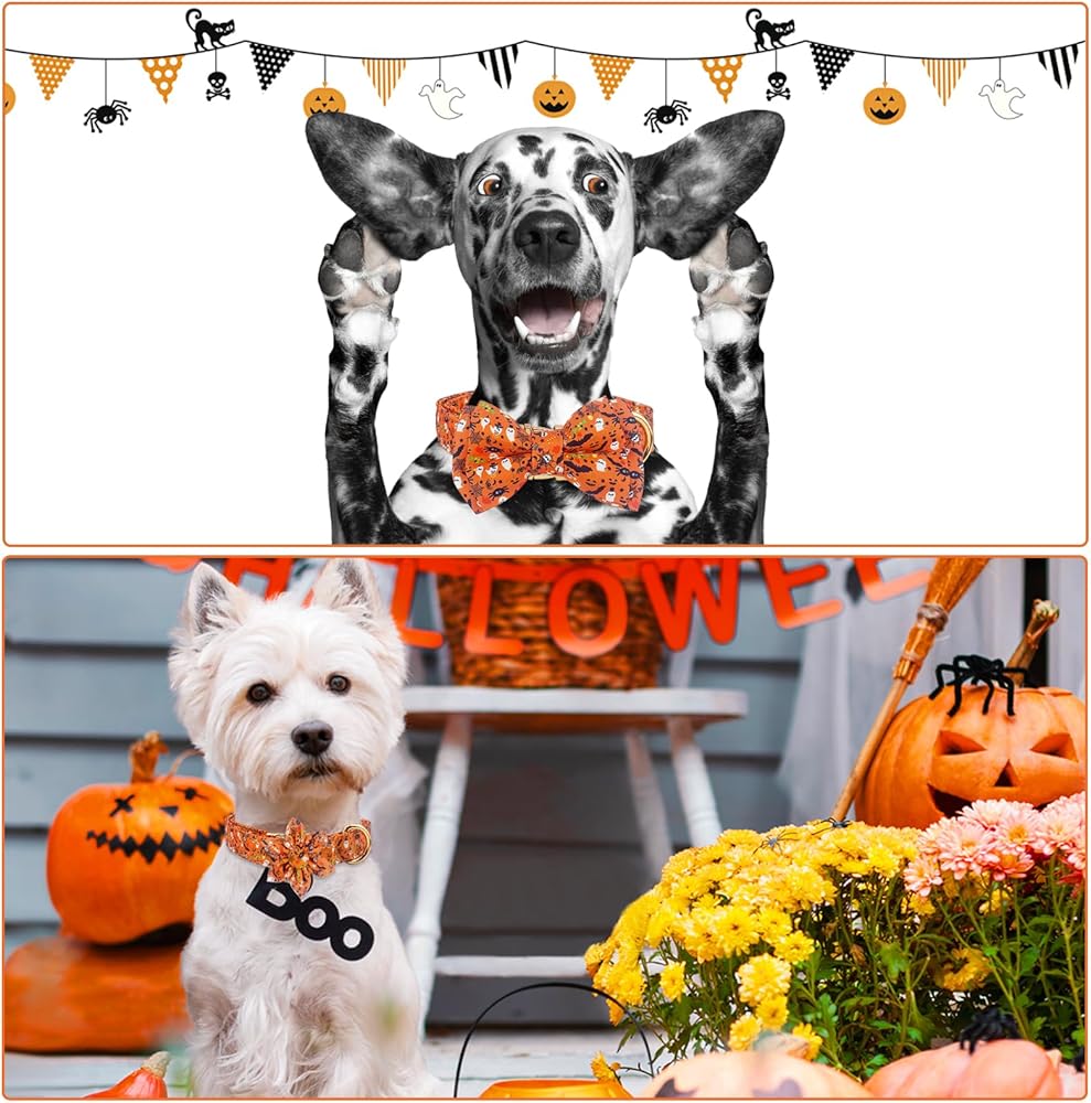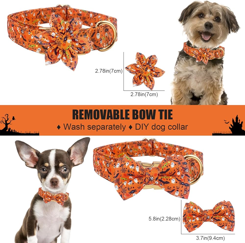 REMOVABLE: 2 different decorations, bow tie and flower bow tie with elastic band, removable, you can take off to decorate other dog collars.