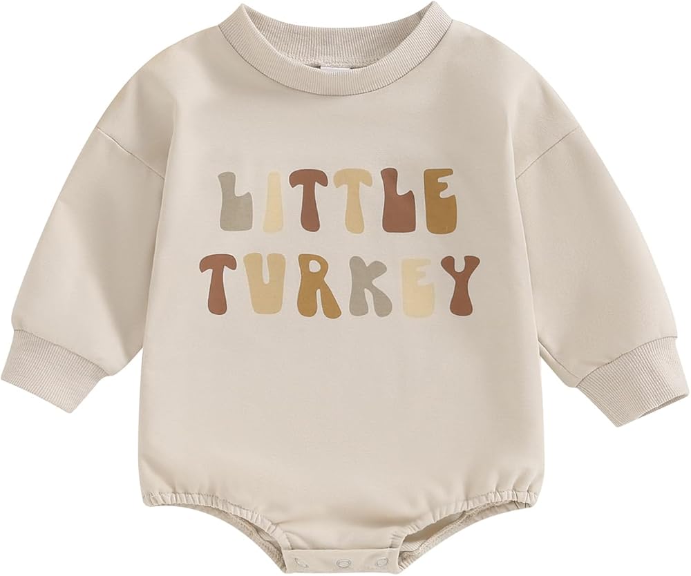 DESIGN: Infant baby boy girl thanksgiving sweatshirt romper, thanksgiving onesies for baby girls boys, infant thanksgiving clothes, thanksgiving bodysuit baby boy girl, unisex thanksgiving outfit baby clothes, little turkey onesie romper, crewneck, oversized, snap button closure.