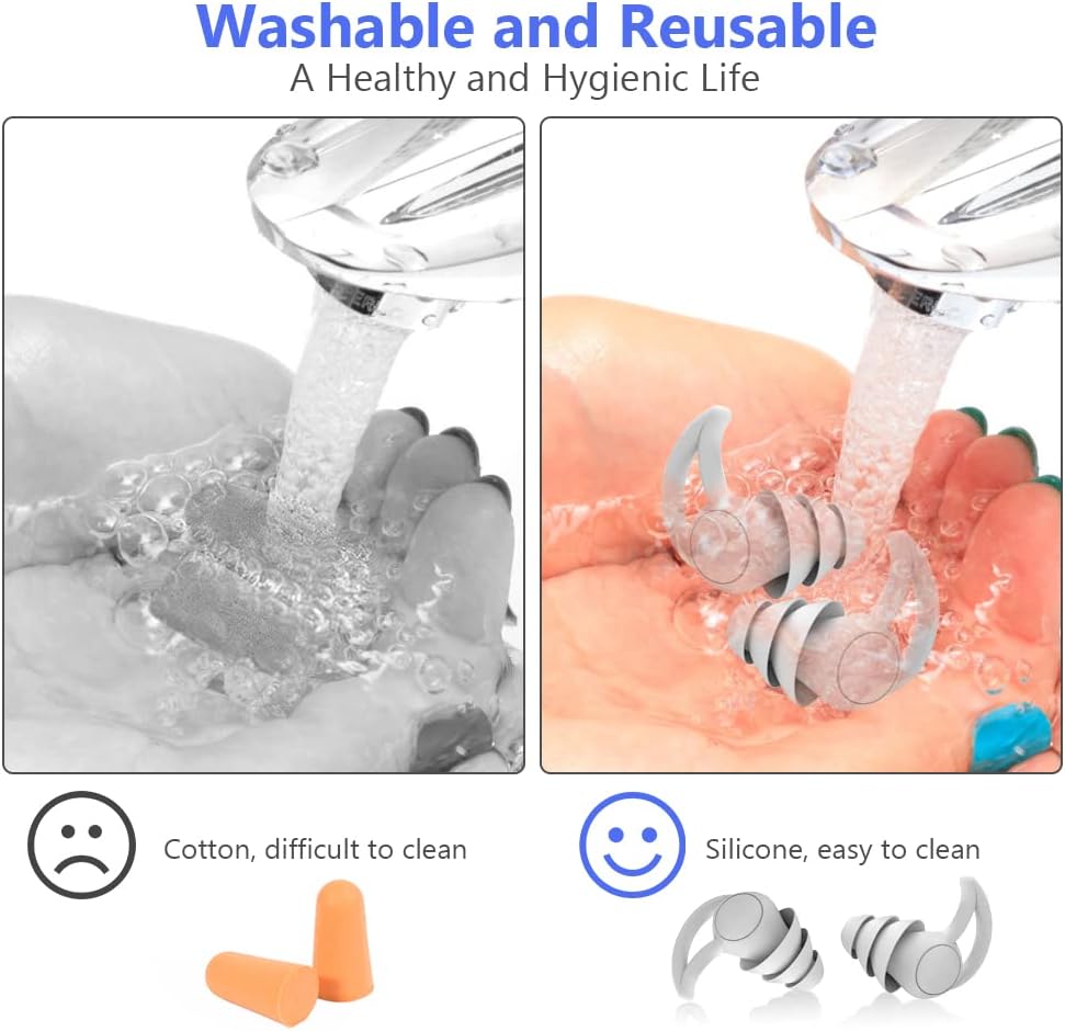 3. Reusable: Suitable for long-term wearing without causing pressure, pain, irritation or itching. Noise-cancelling earplugs made from skin-friendly silicone are easy to put on and wash or wipe clean, and these earplugs can be used for a long time.
