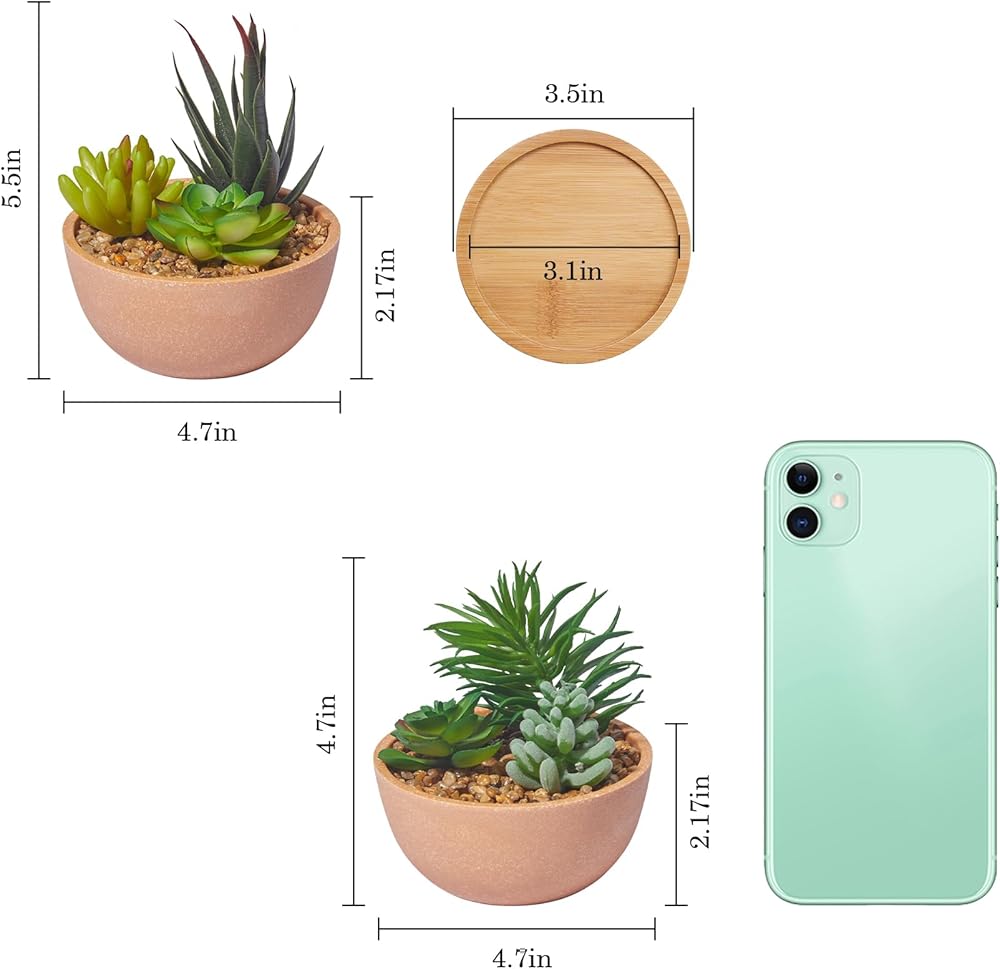 المقاس: يبلغ مقاس وعاء النباتات الصناعية 4.5 انش × 4.5 انش × 4.5 انش، تقريبًا بحجم وعاء صغير، يناسب مكتبك وعتبة النافذة بشكل مثالي.