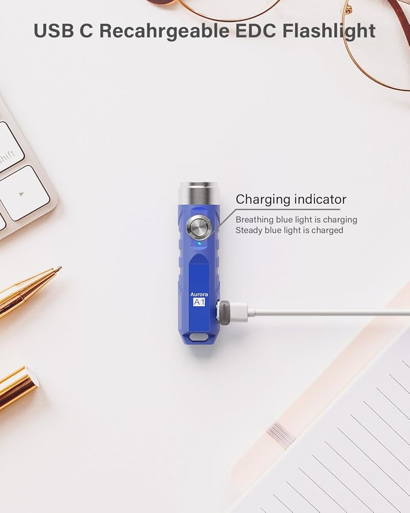 🔦[تشغيل وإغلاق مؤقت]: يأتي ضوء سلسلة المفاتيح أورورا a1 القابل لإعادة الشحن مع وضع التشغيل اللحظي، ويمكن الوصول إلى هذه الميزة عن طريق الضغط مع الاستمرار. من خلال النقرات الخماسية، يمكنك قفل المصباح الصغير لتجنب تشغيله عن طريق الصدفة.