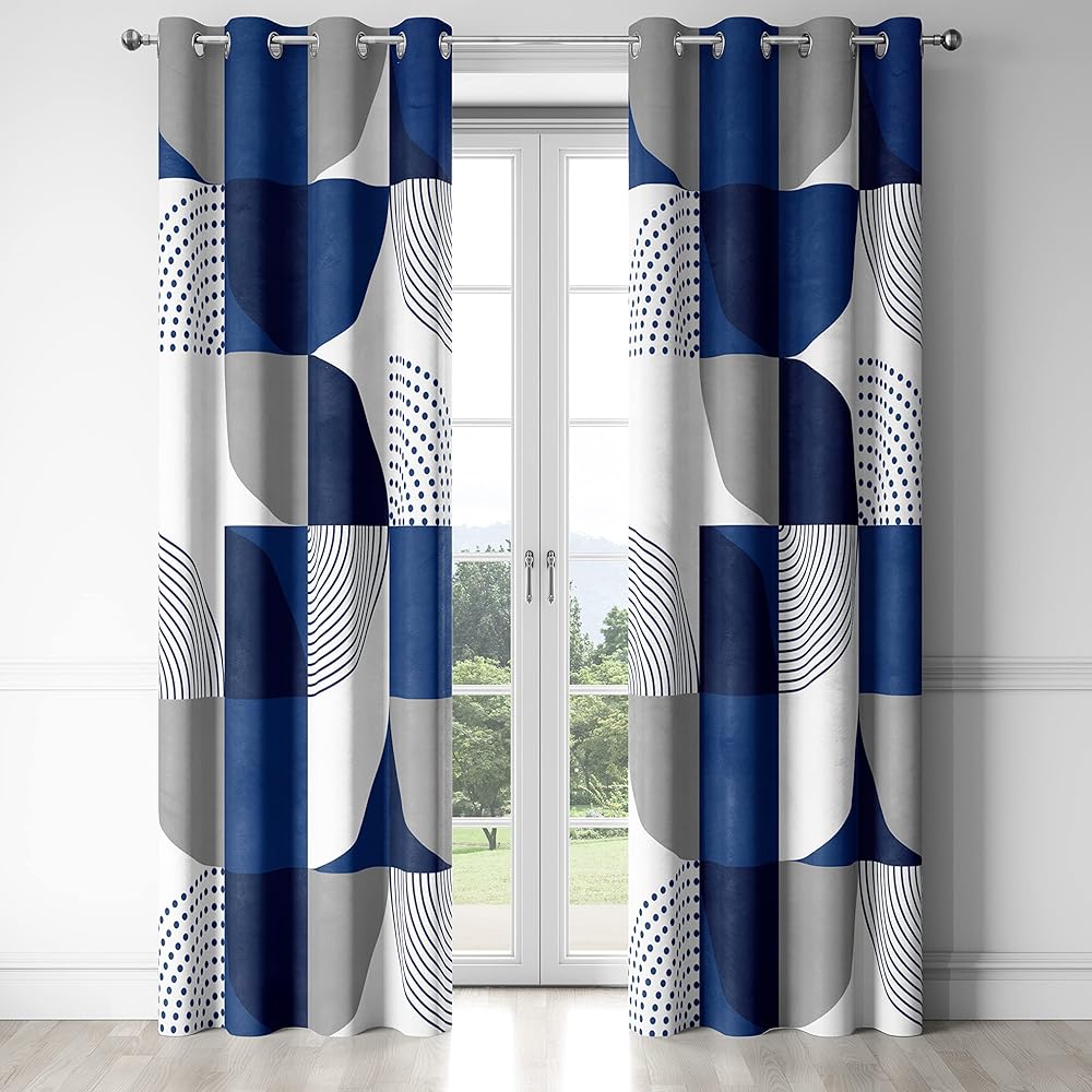 - ستائر نافذة هندسية زرقاء، بطول 84 انش