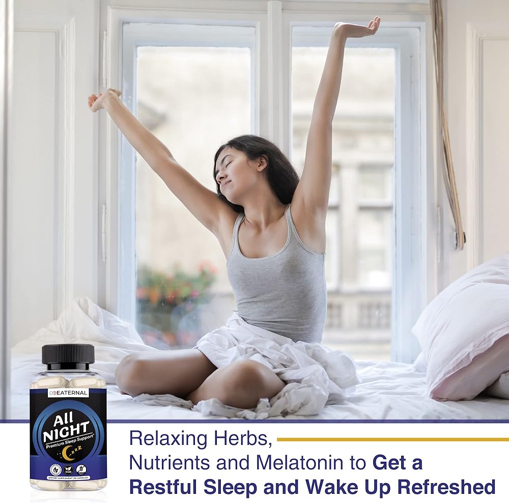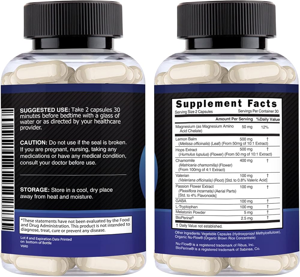 النوم الطبيعي طوال الليل يدعم تكوين عدم العادة | النوم يساعد على نوم أطول وأعمق | مكمل النوم مع جذر فاليريان، البابونج، غابا، الميلاتونين، المغنيسيوم | 60 قيراط