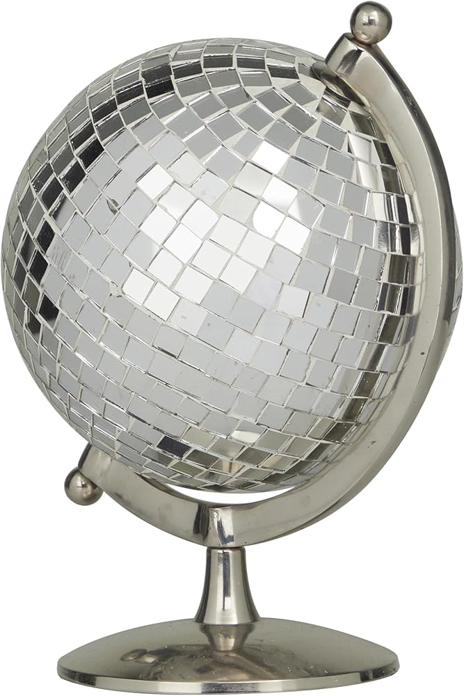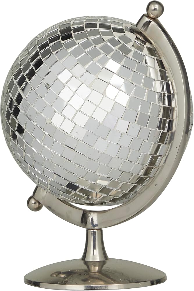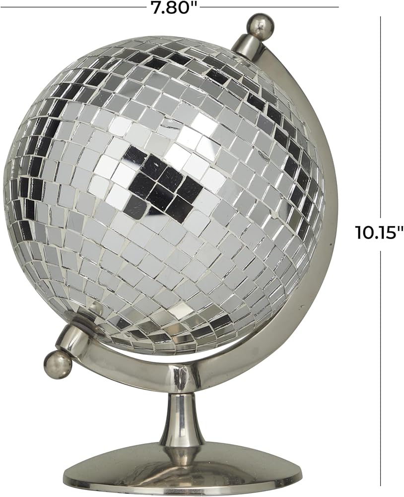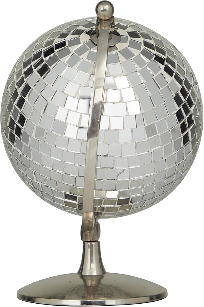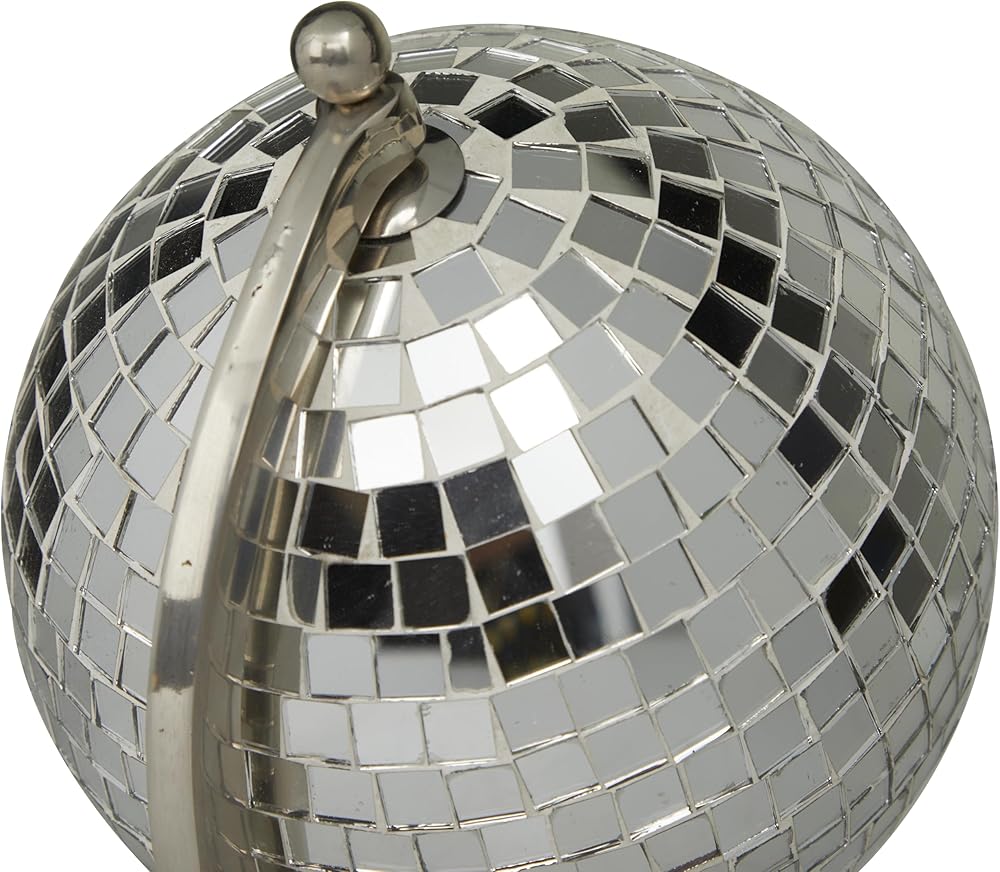 • FEATURES ROUND GLOBE: Inspired by classic disco ball this globe features square mirror cut outs overlay that projects a silver reflection for dazzling display
