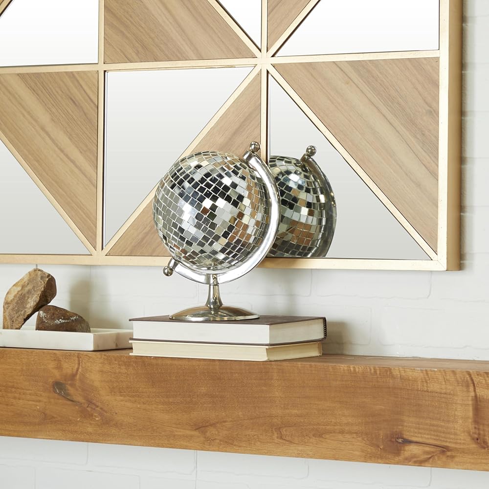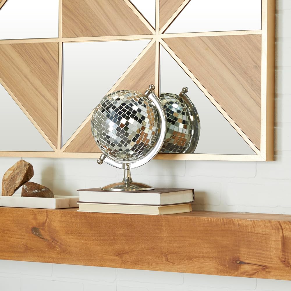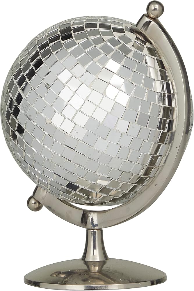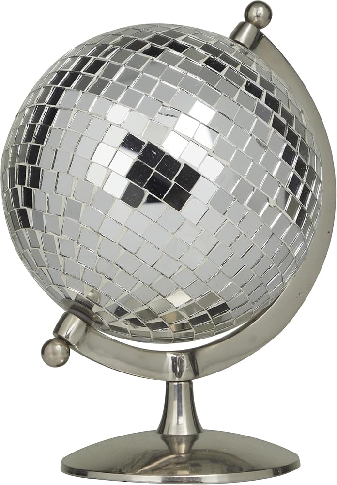 • FEATURES ROUND GLOBE: Inspired by classic disco ball this globe features square mirror cut outs overlay that projects a silver reflection for dazzling display