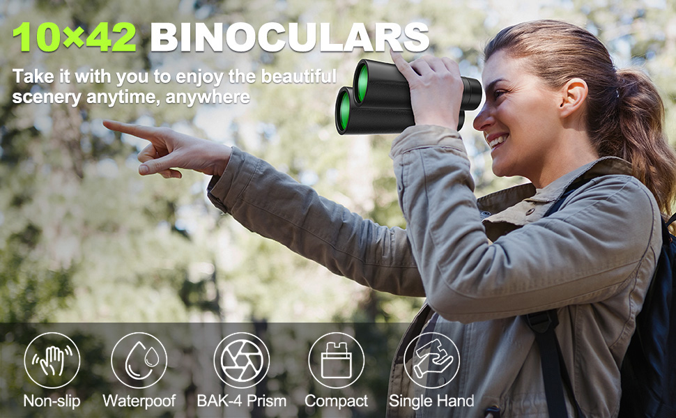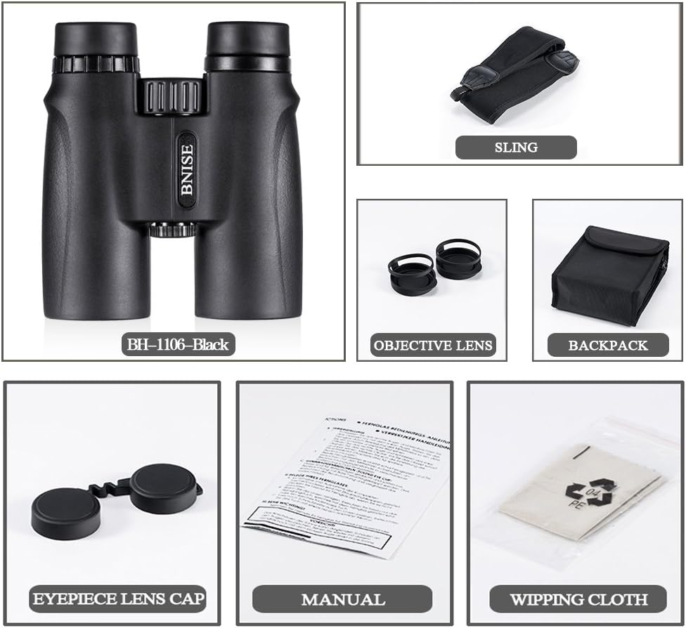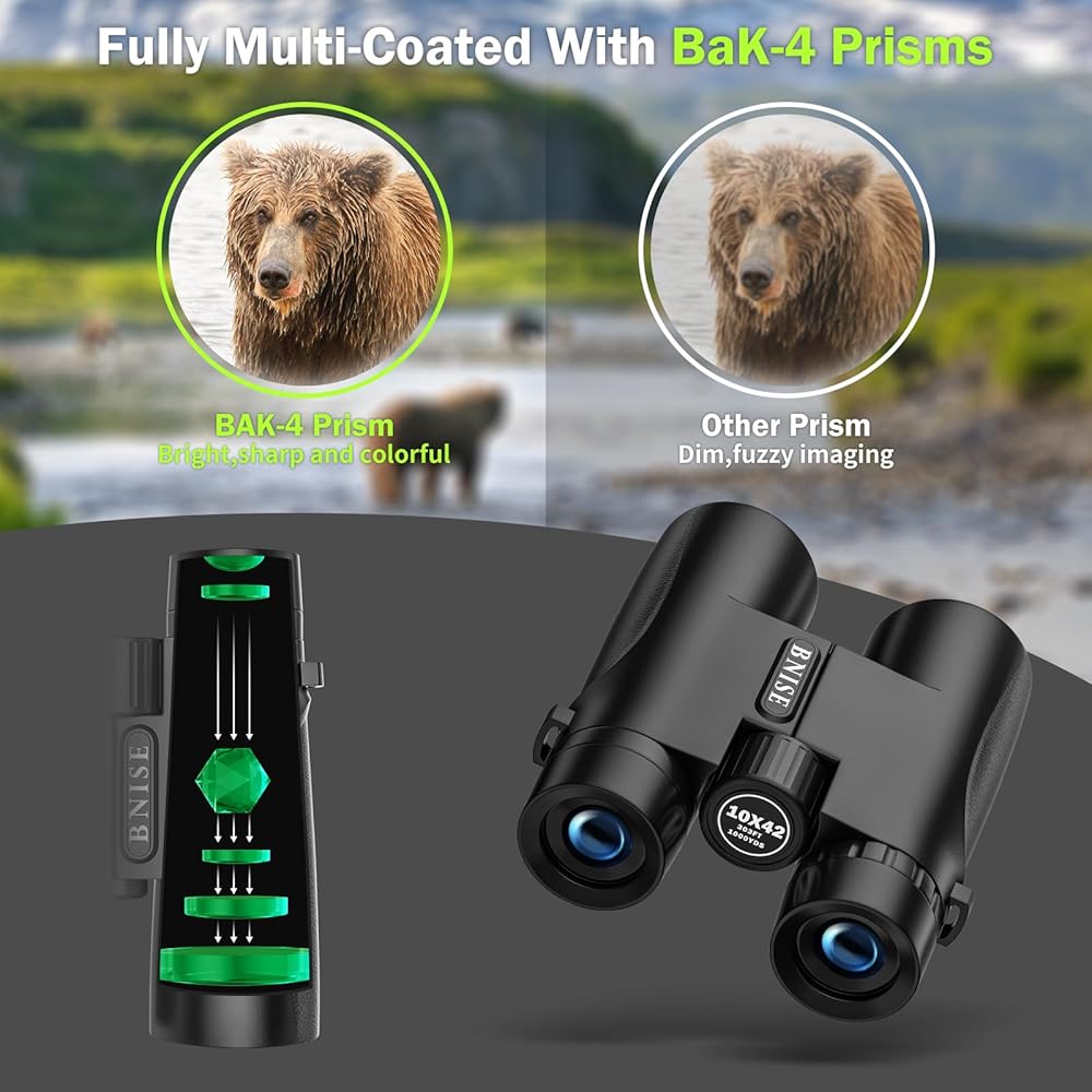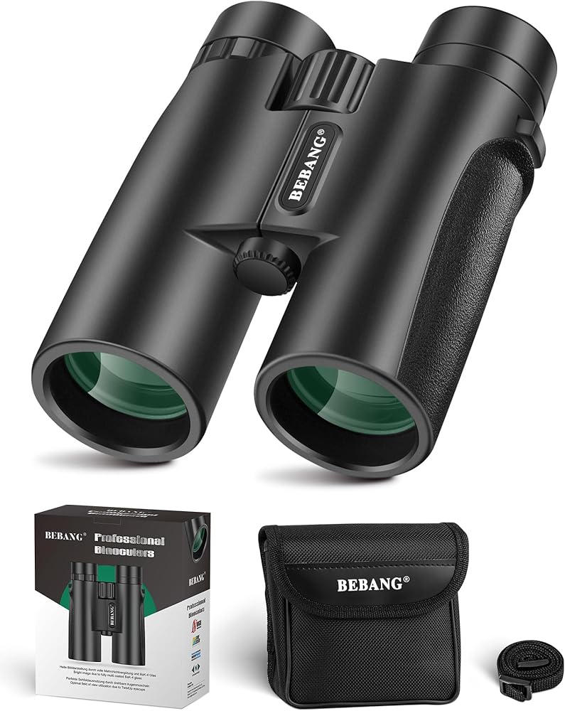 مناظير BEBANG للبالغين 10x42 مناظير مقاومة للماء عالية الطاقة لمشاهدة الطيور والصيد والسفر ومشاهدة النجوم والرياضة والحياة البرية ومجموعة مشرقة وواضحة من الرؤية