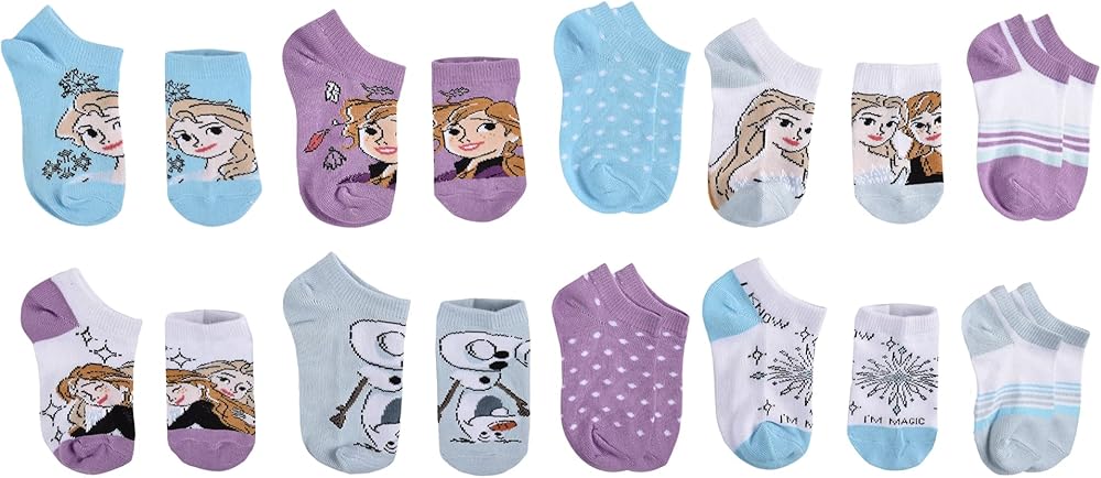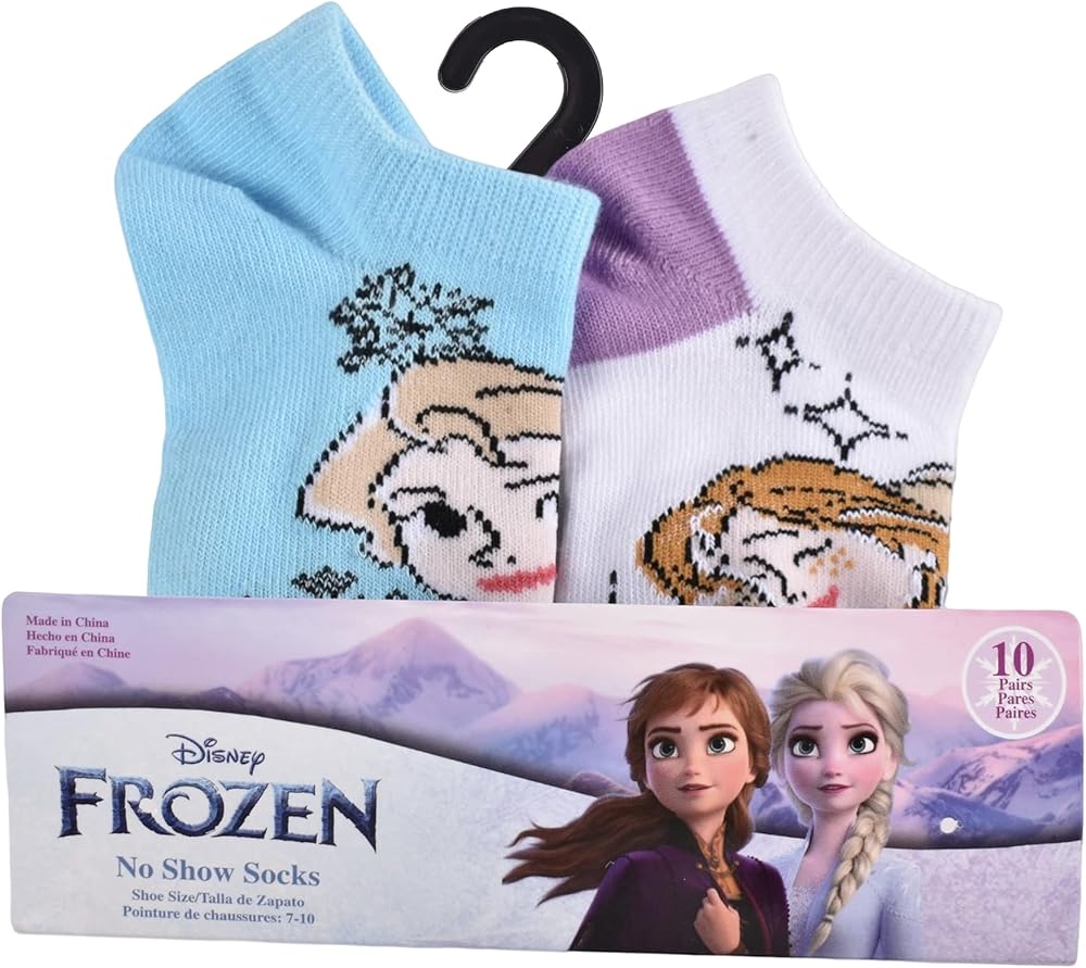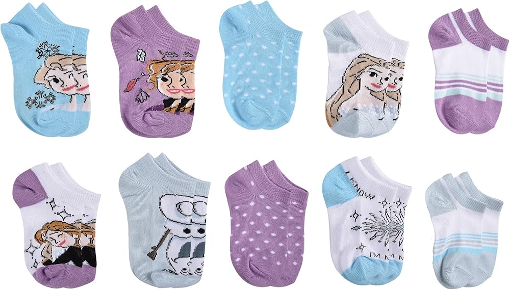 10-Pack includes 10 pairs of assorted Frozen 2 no show socks. These Frozen 2 socks are made up of 97% Polyester and 3% Spandex material and are lightweight and soft.