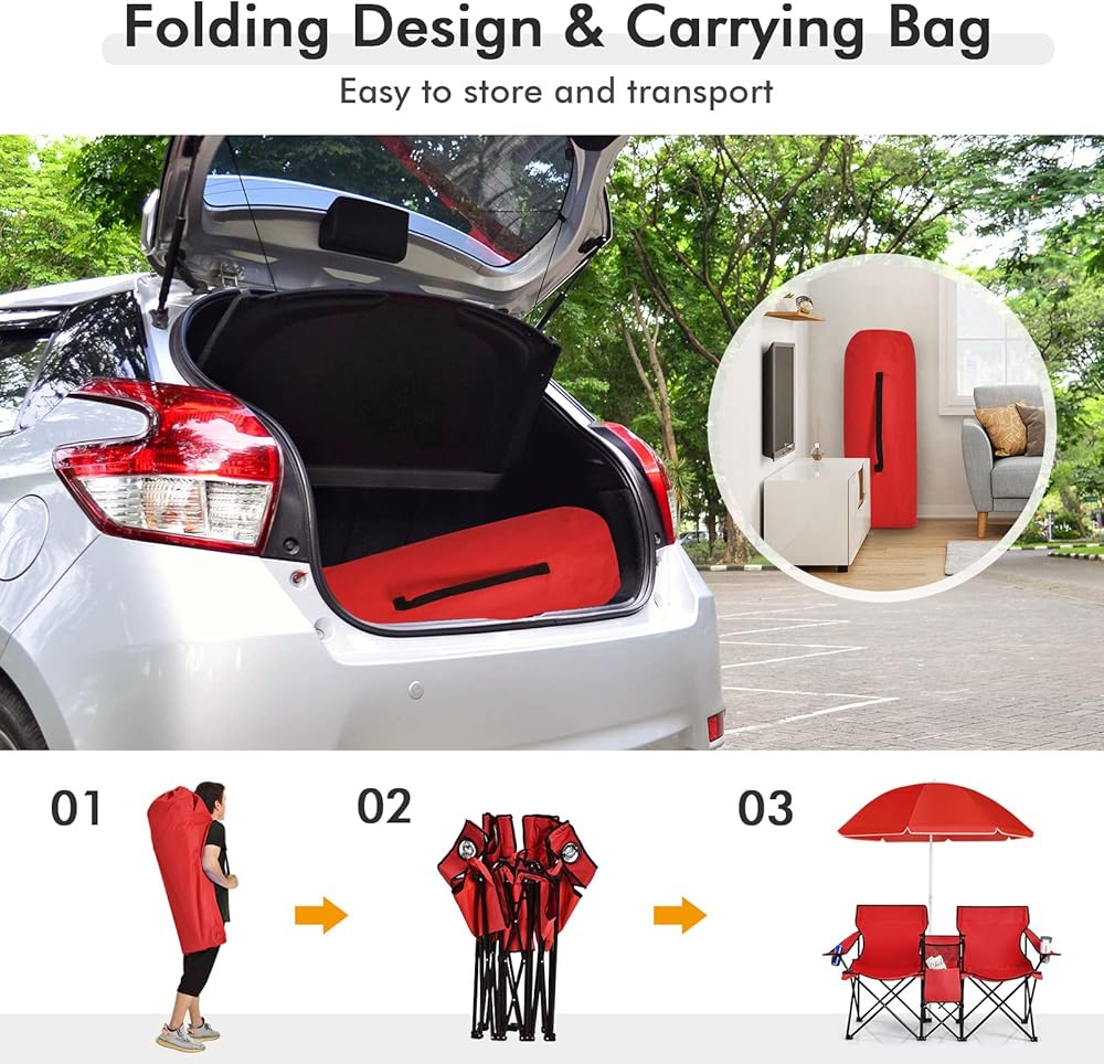 سيكون هذا الكرسي المزدوج للنزهات مع مظلة إضافة رائعة لوقت فراغك. بفضل التصميم البسيط والعملي، فهو مثالي للنزهات والتخييم وصيد الأسماك مع حبيبك أو صديقك في الحديقة والشاطئ وموقع التخييم وما إلى ذلك. ويمكنك وضعه في الفناء الخلفي أو الشرفة للاستمتاع بوقت فراغك في النسيم وأشعة الشمس. ويمكن للطاولة الجانبية الصغيرة مع مساحة تخزين عرض وتخزين متعلقاتك، مثل الهواتف المحمولة والمجلات وأكثر من ذلك للحصول على وقت فراغ أكثر متعة. ويمكن لحقيبة التبريد الصغيرة المتضمنة تخزين مشروبك والحفاظ عليه باردًا لتجربة أكثر برودة في الصيف. بالإضافة إلى ذلك، تم تصميم المظلة القابلة للتعديل والقابلة للتعديل لتظليل أشعة الشمس حسب احتياجاتك وإعجاباتك. بالإضافة إلى ذلك، مع حقيبة حمل، يمكن حملها معك لأخذ أداة وقت الفراغ هذه معك، مثالية للتخييم والسفر. ما عليك سوى شراء الكرسي المزدوج للاستمتاع بوقت فراغك مع حبيبك!