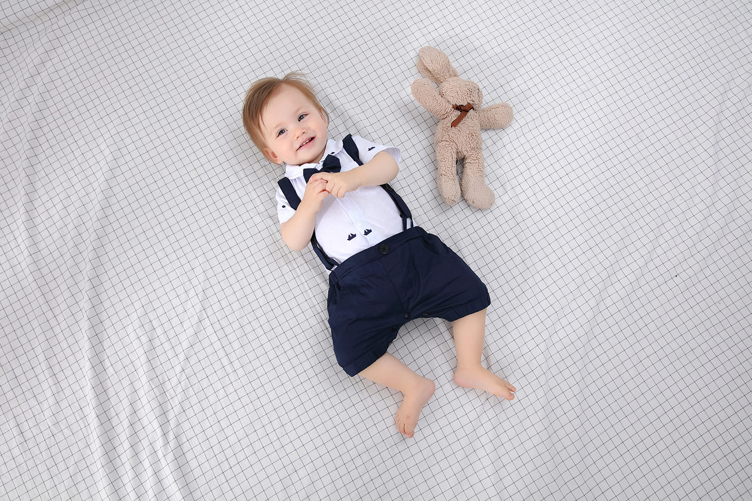 رومبر LXKIKMM للأطفال حديثي الولادة من الأولاد بأكمام قصيرة وربطة عنق على شكل فيونكة