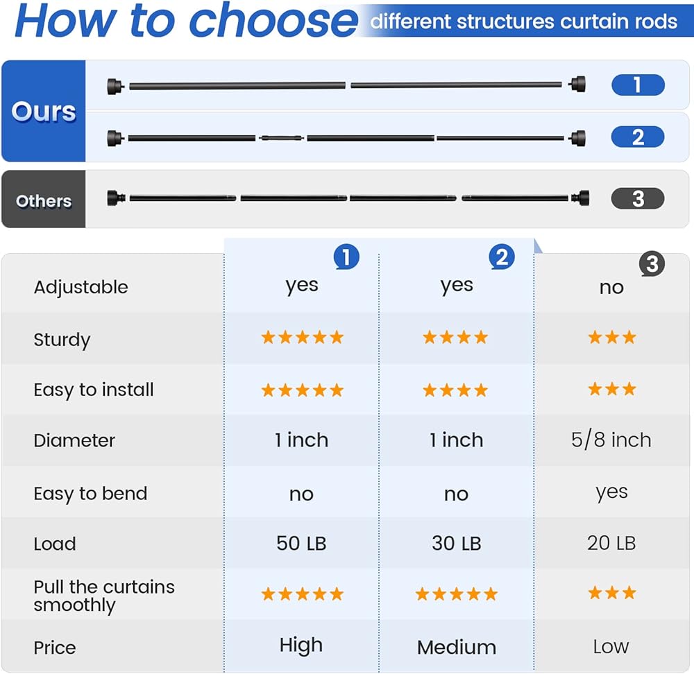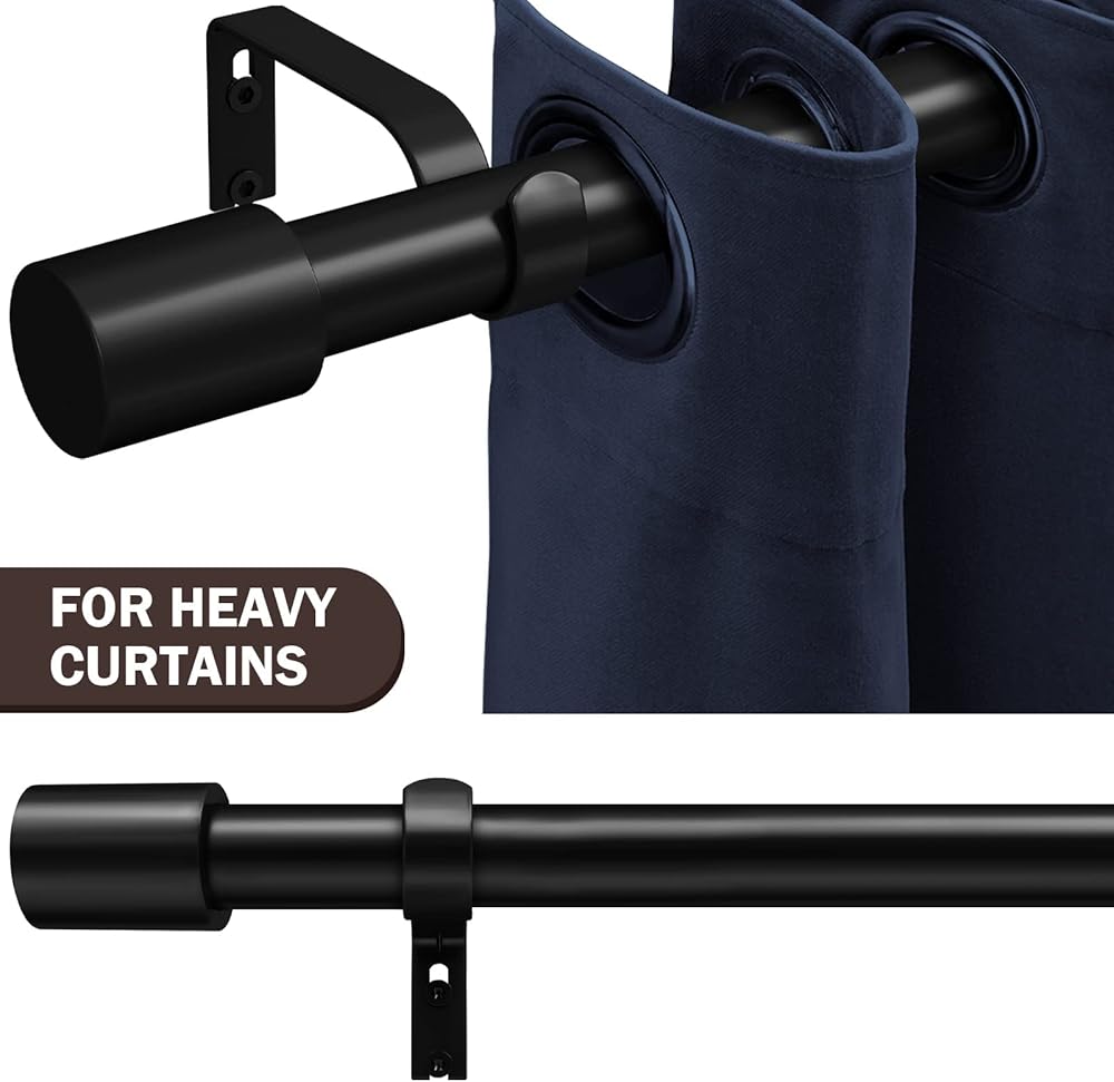 • [HEAVY DUTY & STURDY] IFELS heavy duty curtain rods are made of high quality metal, the tube is 1 inch diameter, curtain rods max load 50LB, heavy duty and sturdy. IFELS single curtain rod treated by high-tech paint baking process, beautiful and doesn't fade, it doesn't stain your white walls and curtains. IFELS black curtain rods is a curtain rod that can be used for a lifetime.