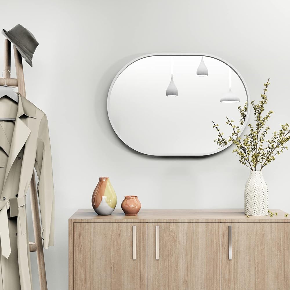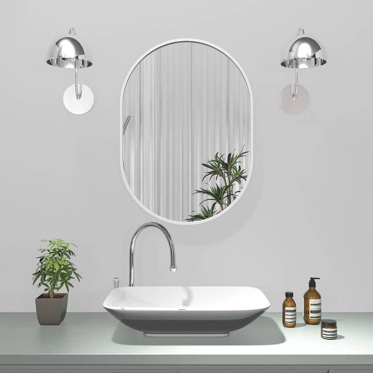 ☆.مرآة بيضاوية مثالية: هذه المرآة الكبيرة مقاس 20 × 28 بوصة هي الحجم المثالي للحمام. الإطار المعدني الأسود يضفي لمسة من الرقي البسيط على أي غرفة. تضفي الحواف الدائرية نعومة على التصميم. تقدم المرآة المصقولة انعكاسًا جميلاً دون أي تشويه للرؤية، كما أن الجزء الخلفي من MDF الفاخر يمنع التآكل في البيئات الرطبة، مما يجعلها مثالية للحمام.