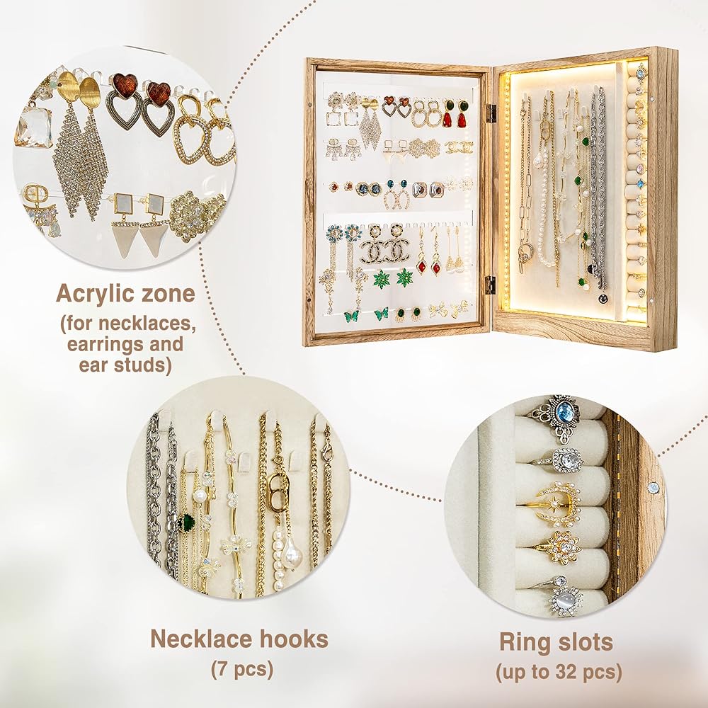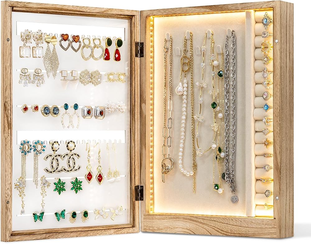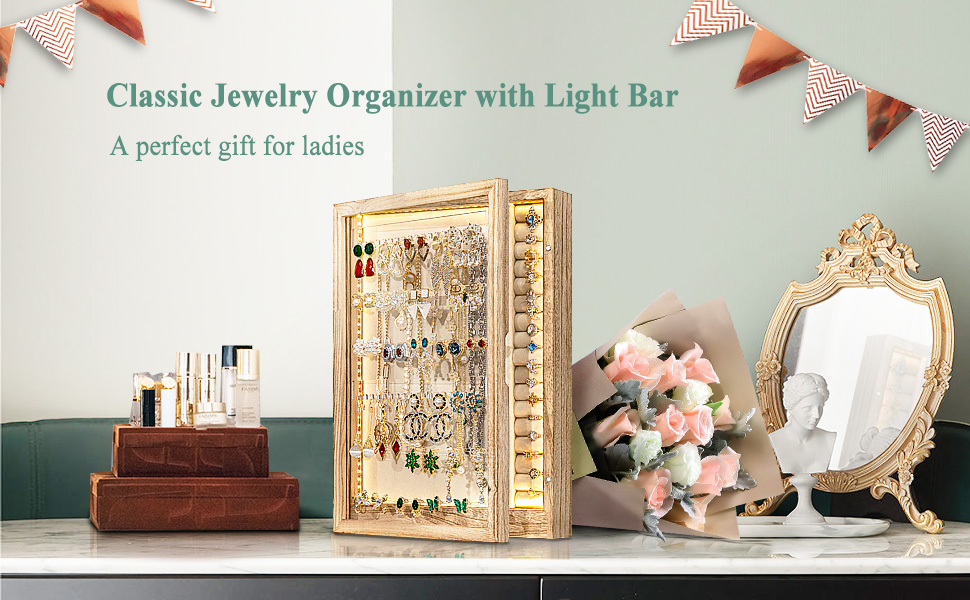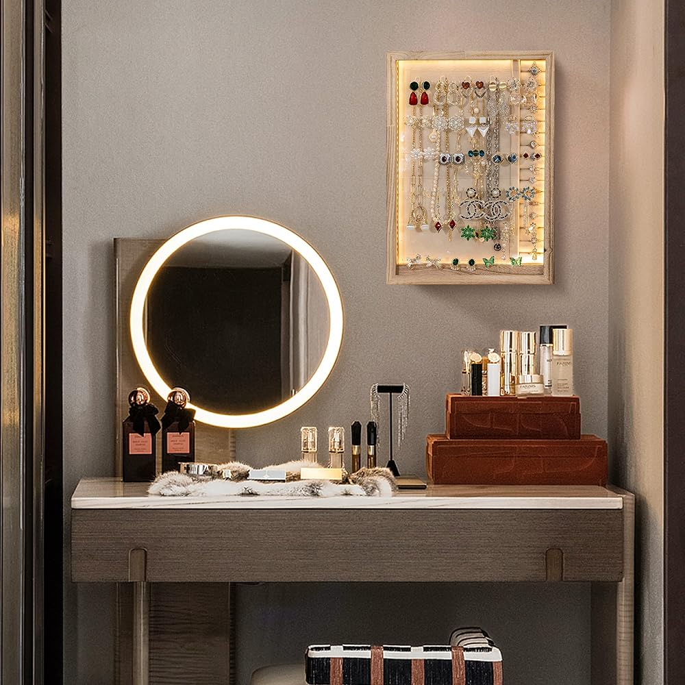 منظم مجوهرات كلاسيكي مع شريط إضاءة