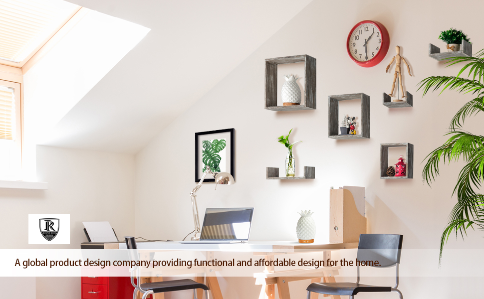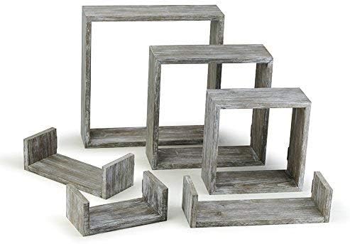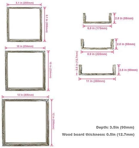 مجموعة أرفف عائمة بتصميم غني من RR مكونة من 6 - أرفف جدارية من الخشب الريفي مع 3 صناديق مربعة و3 أرفف صغيرة على شكل حرف U لتجميع اللمسات النهائية من الخشب المنجرف مجانًا
